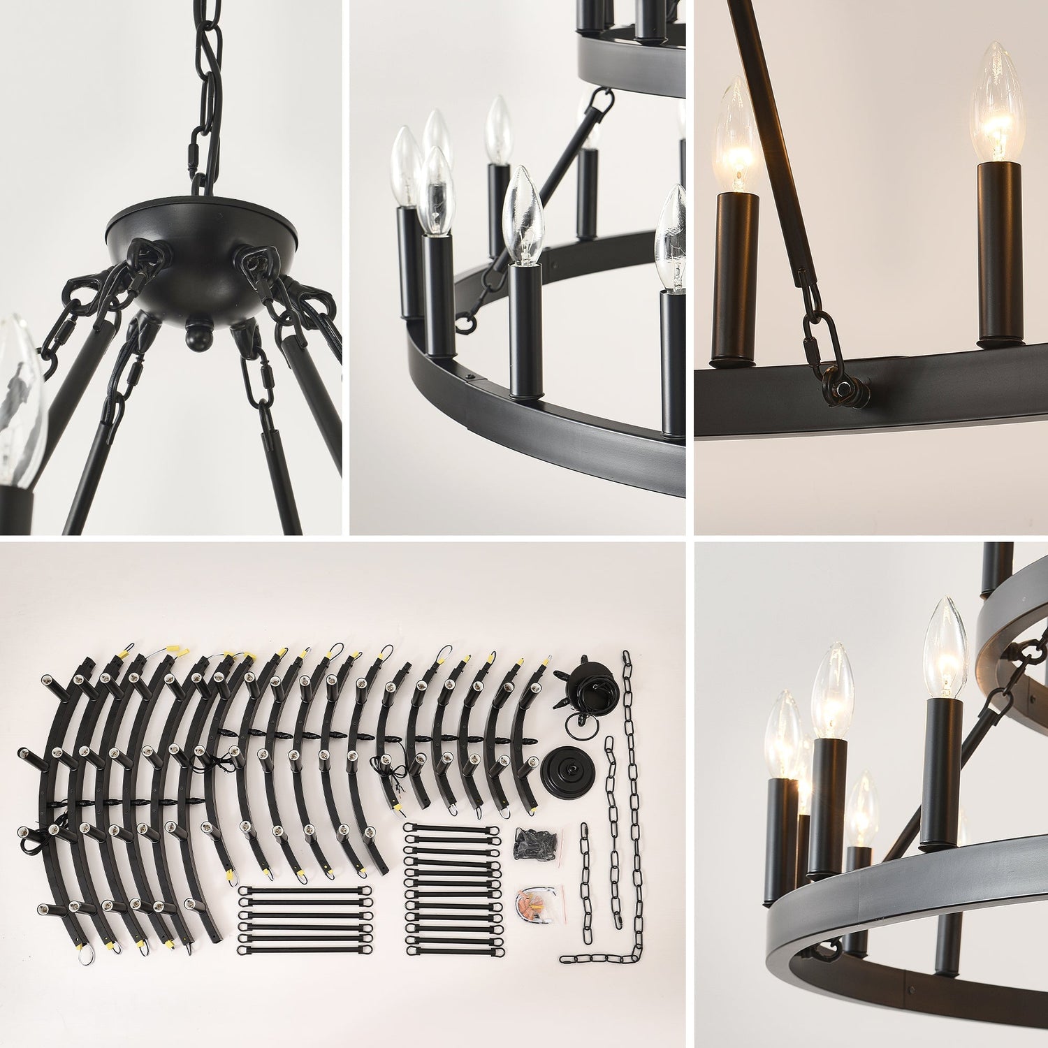 - Includes adjustable height chains for flexible installation