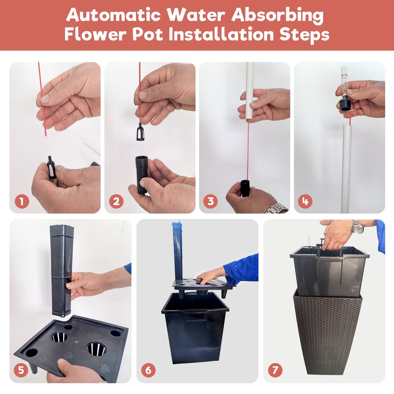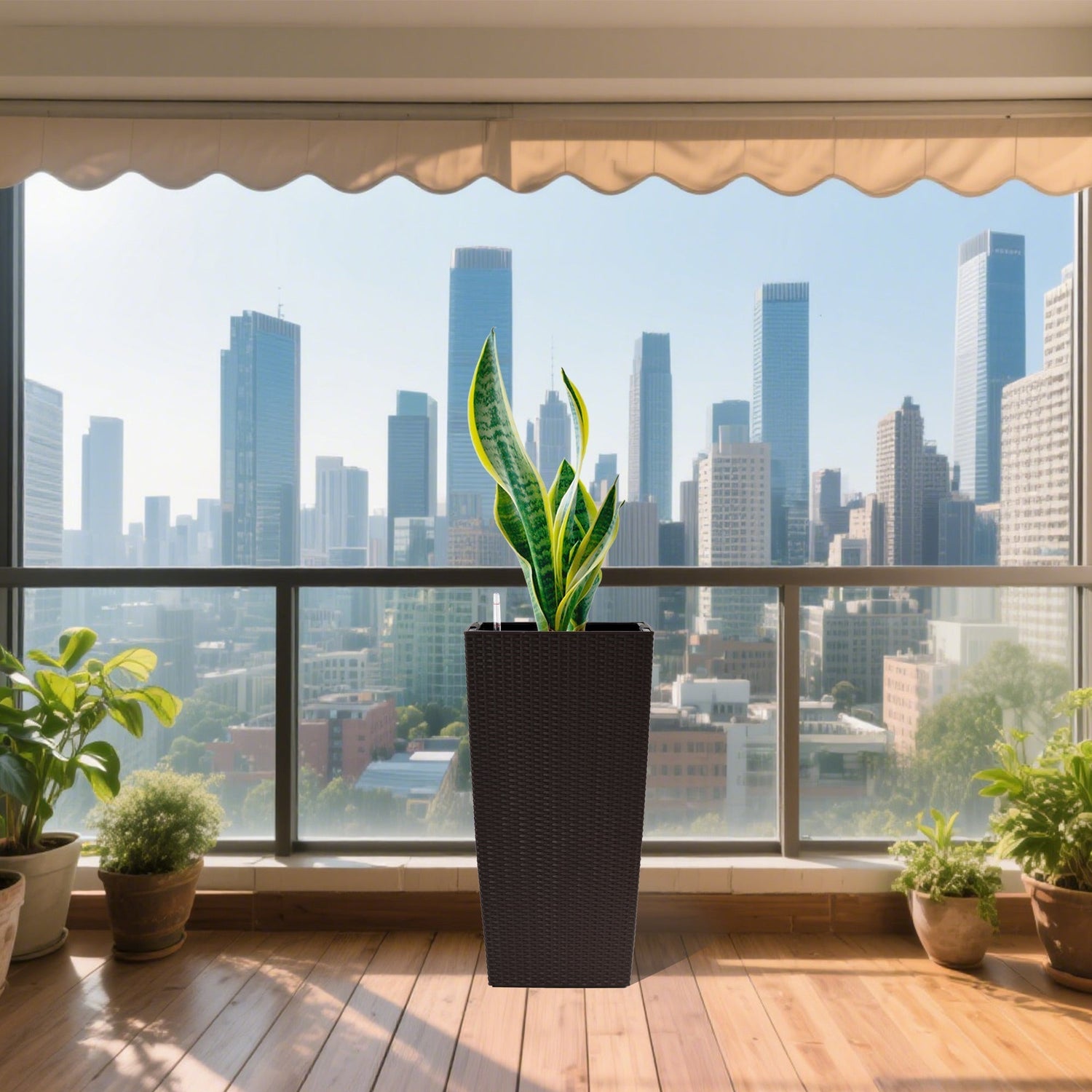 This 30-inch tall large flower pot planter is designed for indoor and outdoor settings, including patios, porches, living rooms, and offices. It combines functional self-watering features with a stylish, decorative appearance to enhance your plant display.