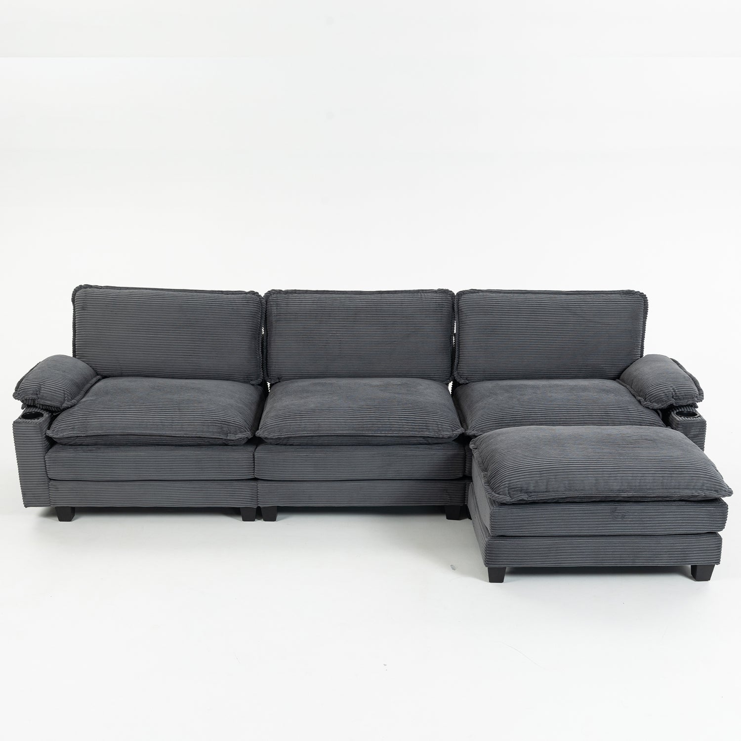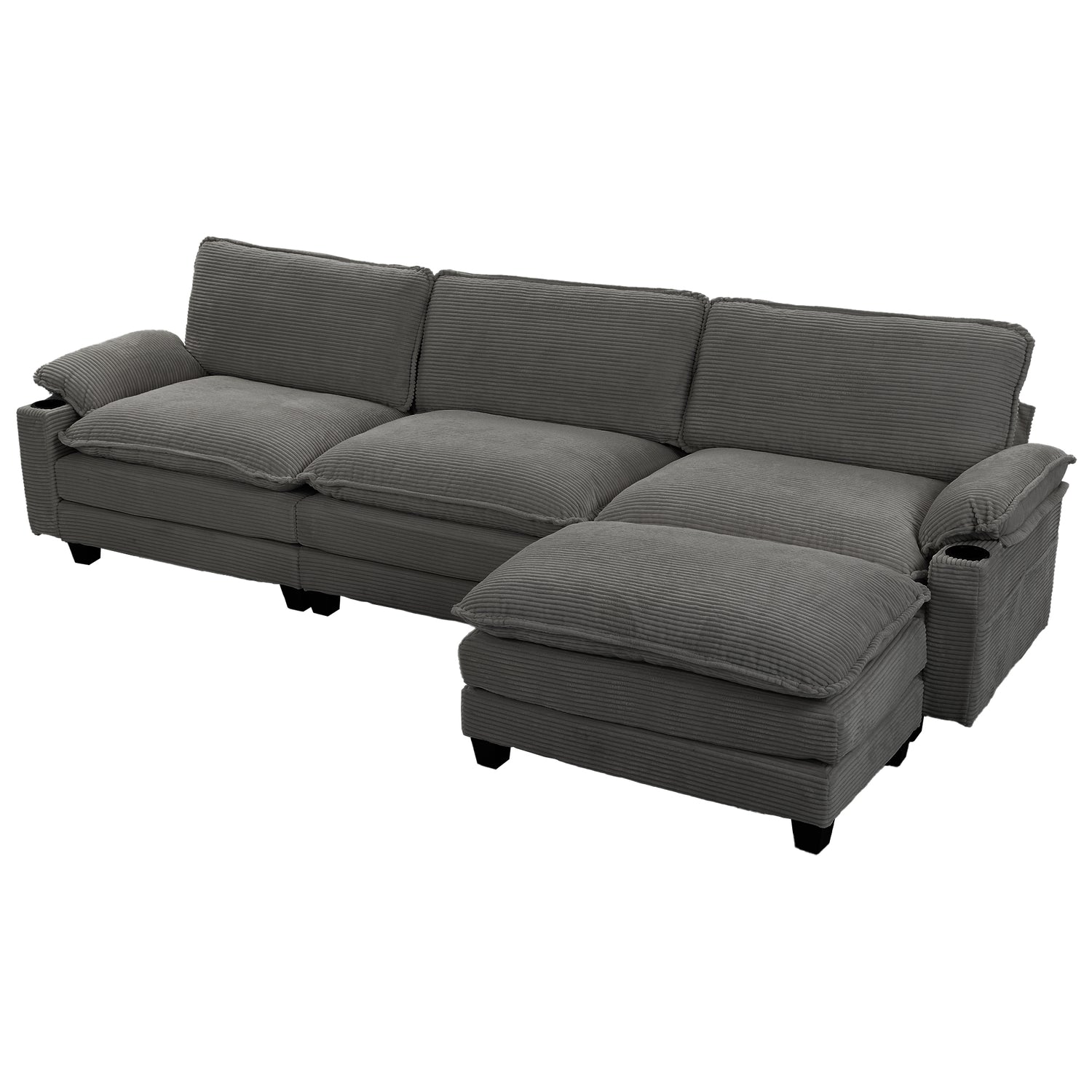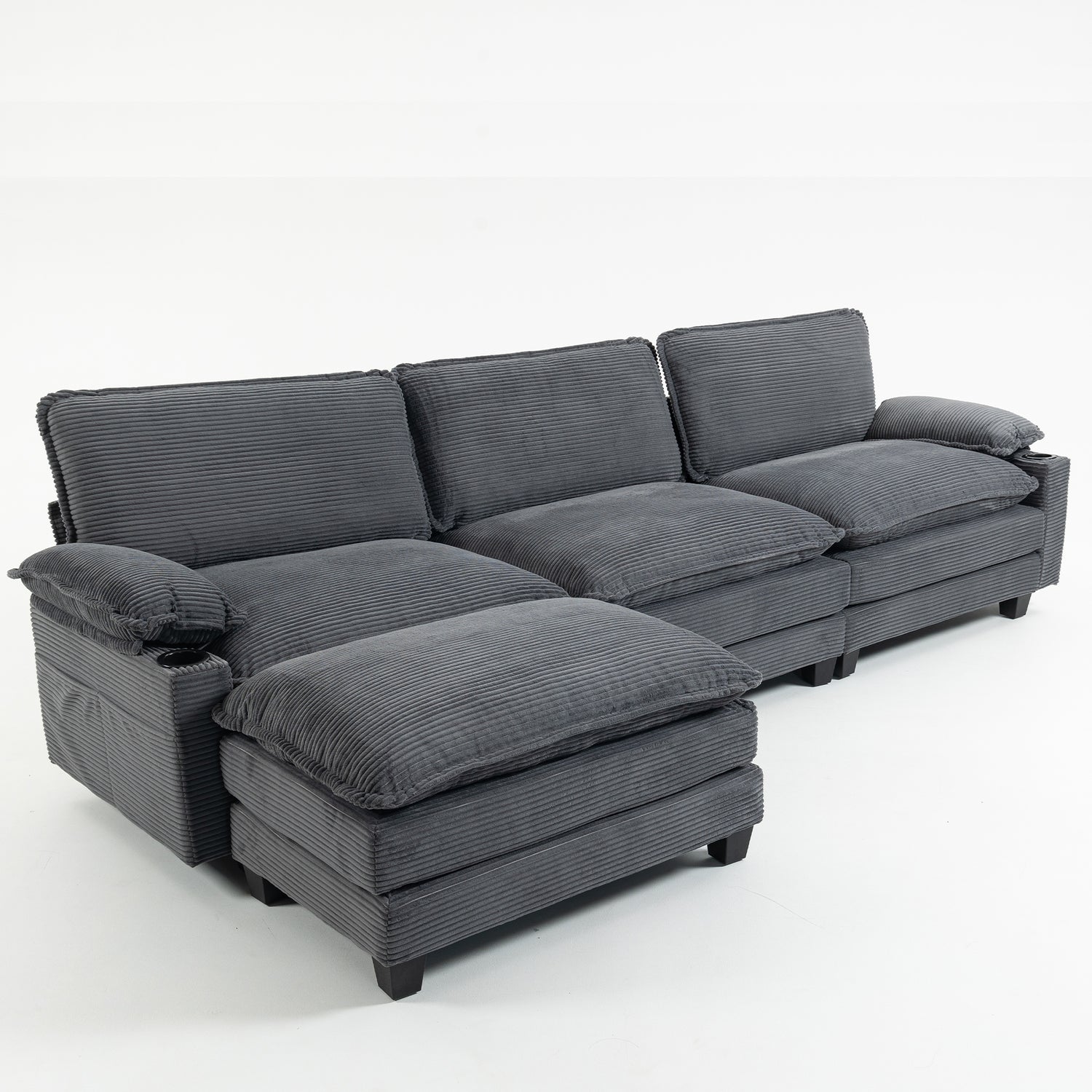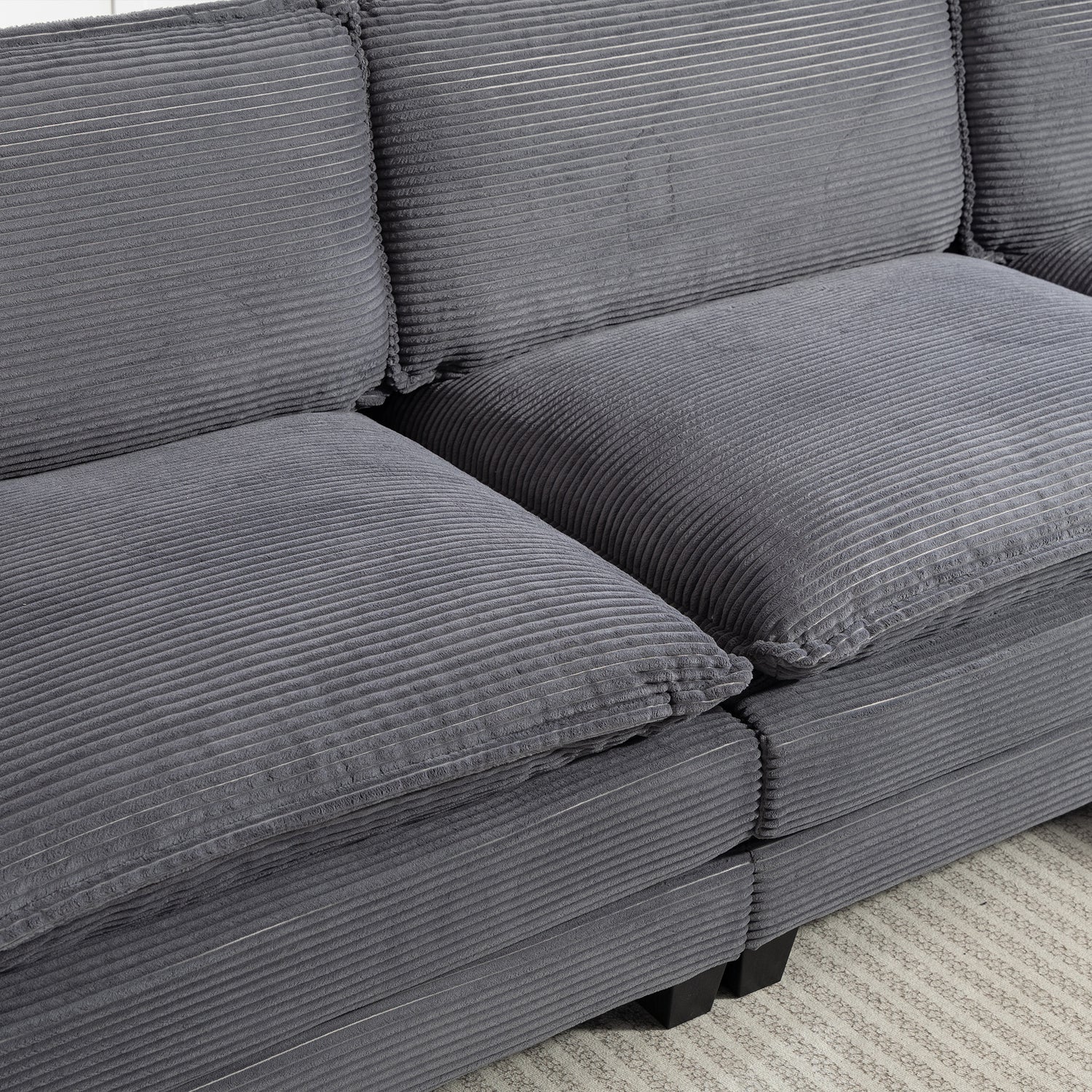113' Modern 3+1 L-Shaped Corduroy Fabric Sofa