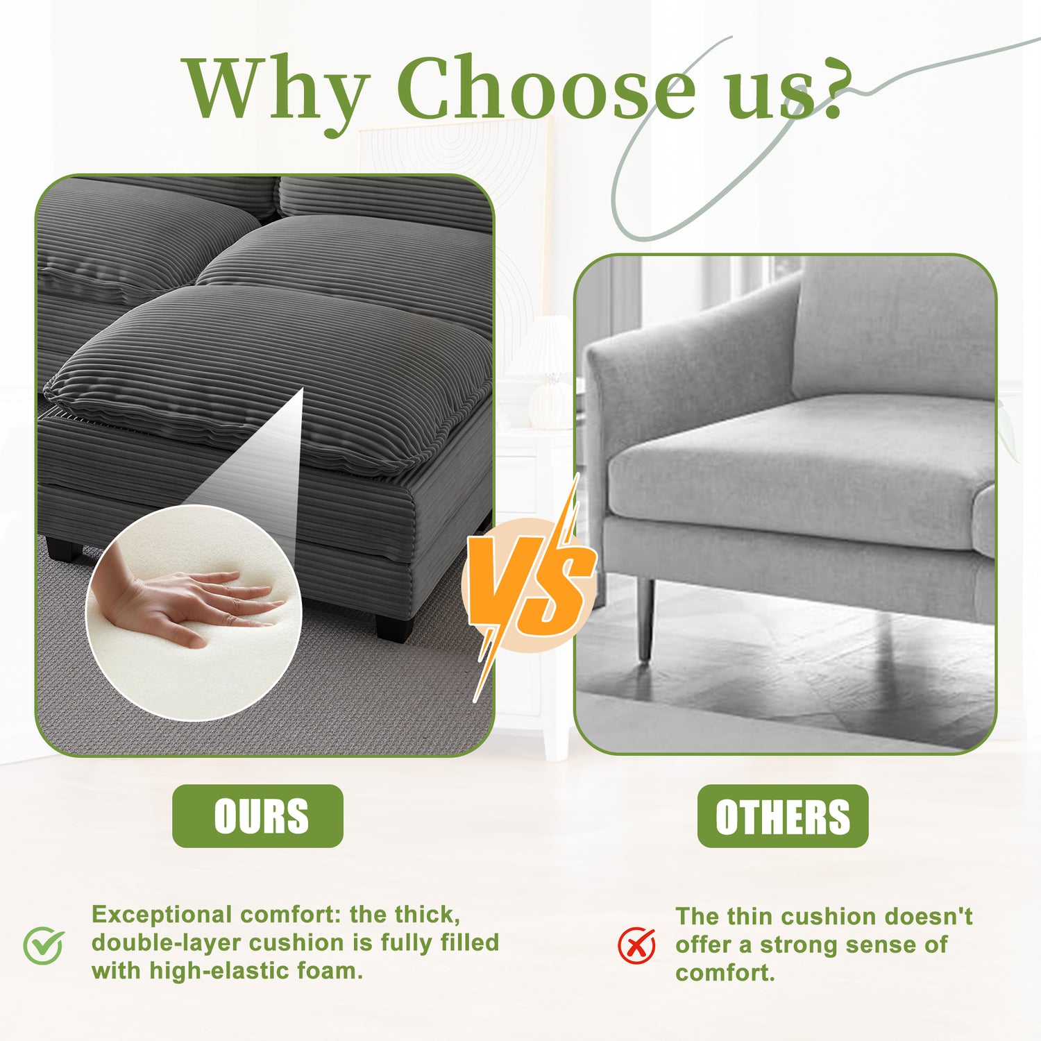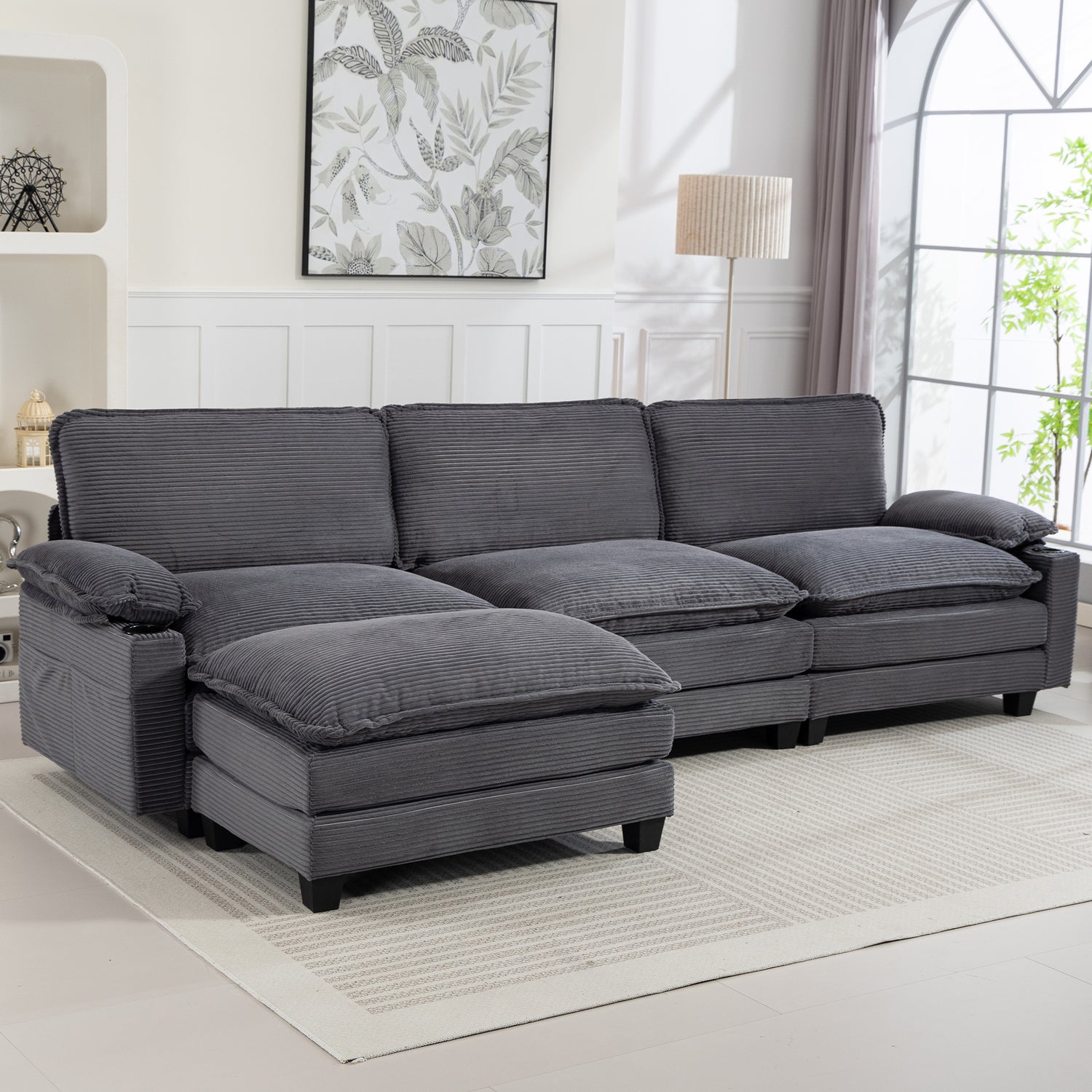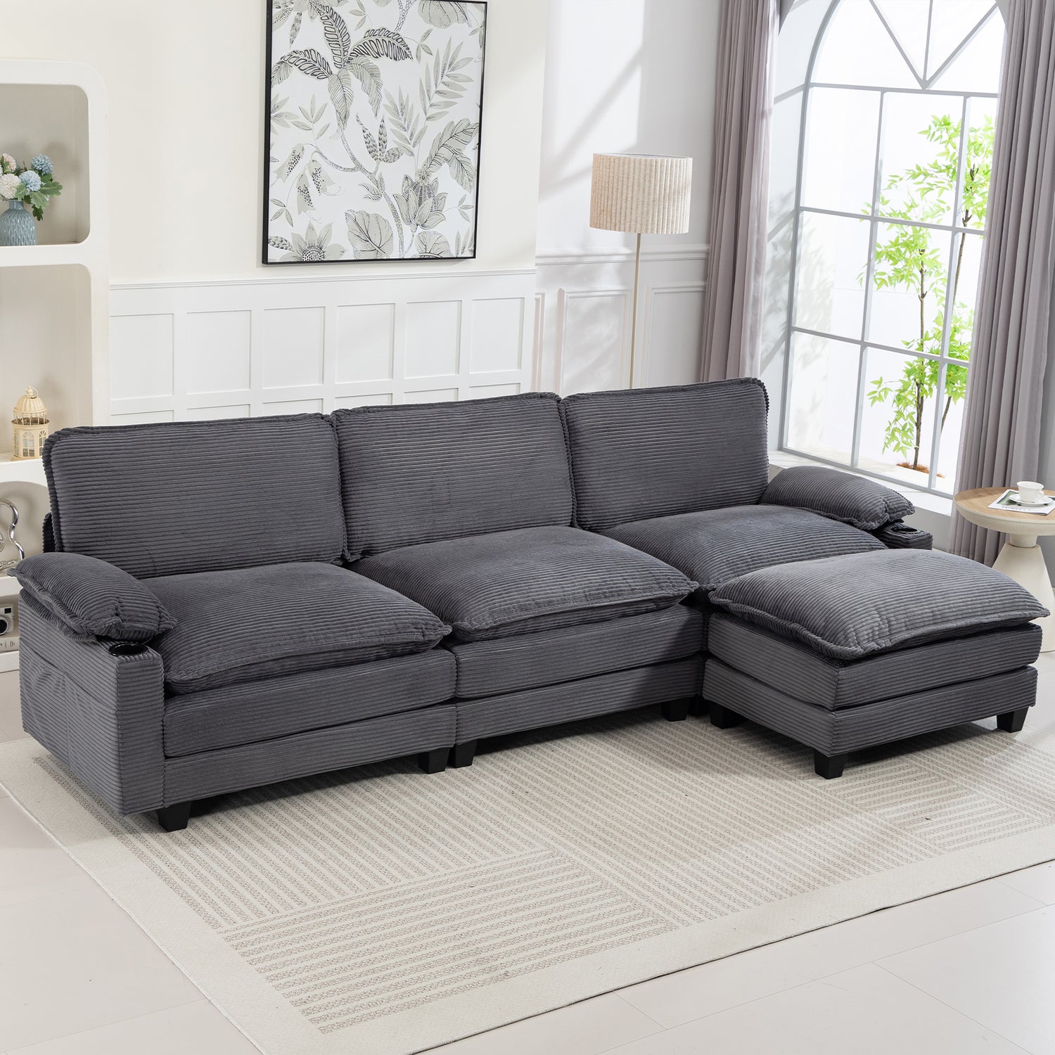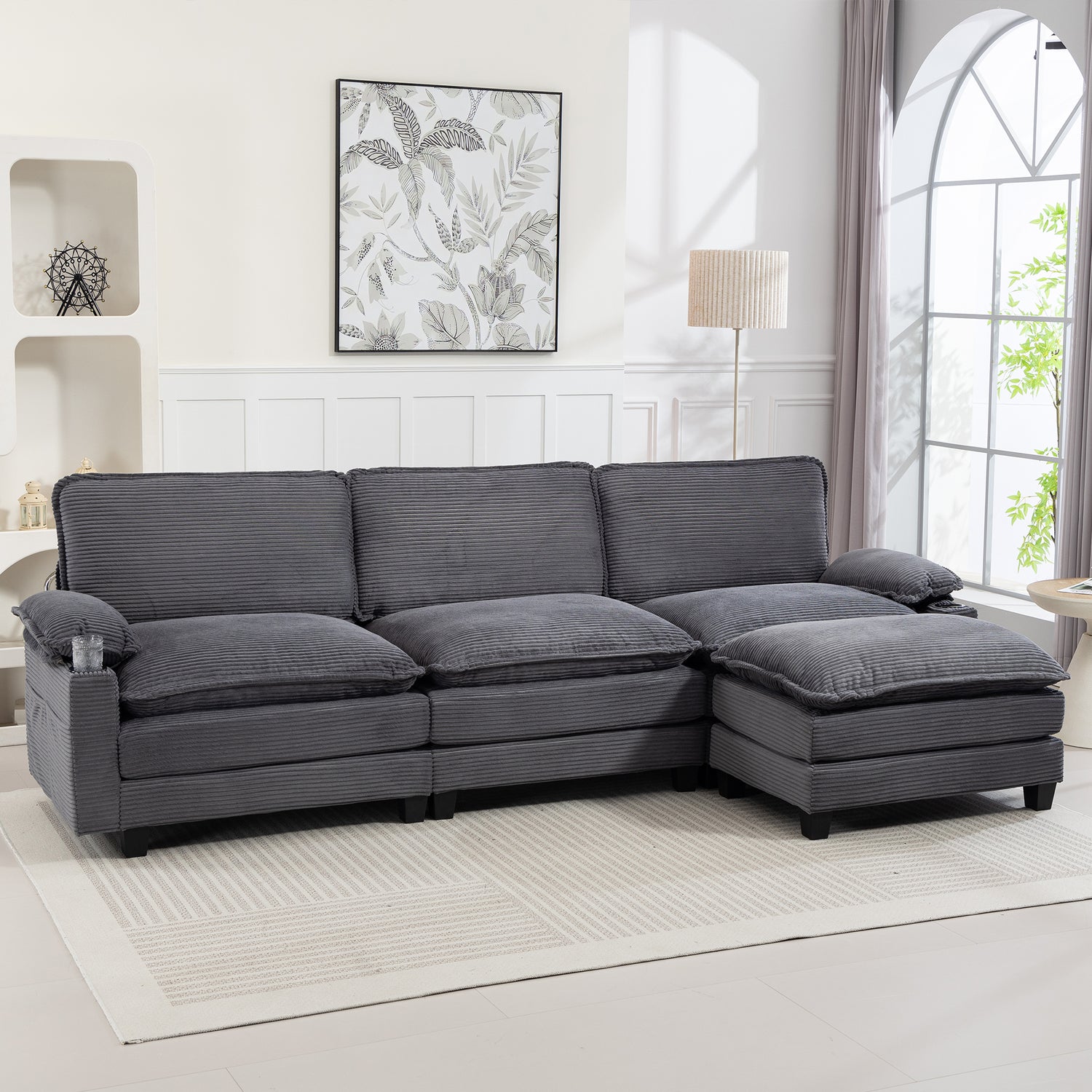 113' Modern 3+1 L-Shaped Corduroy Fabric Sofa