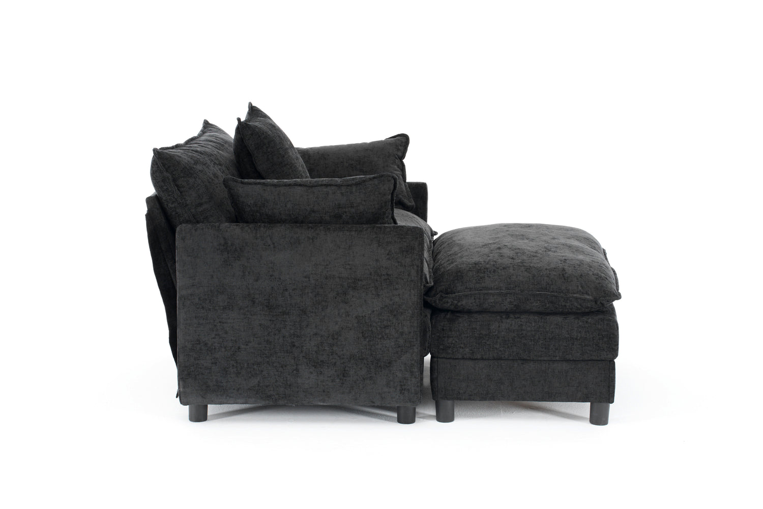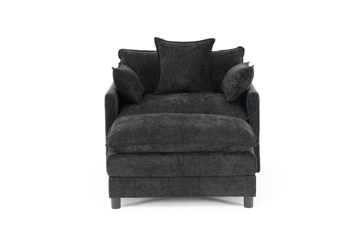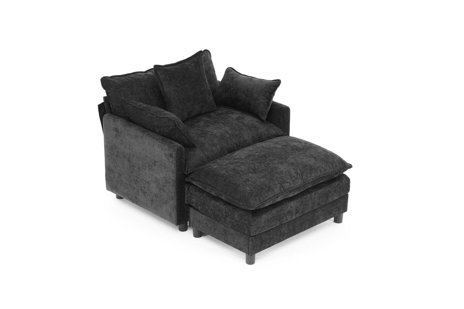 39.4' Modern Accent Chair with Ottoman, Black Chenille Upholstered Armchair