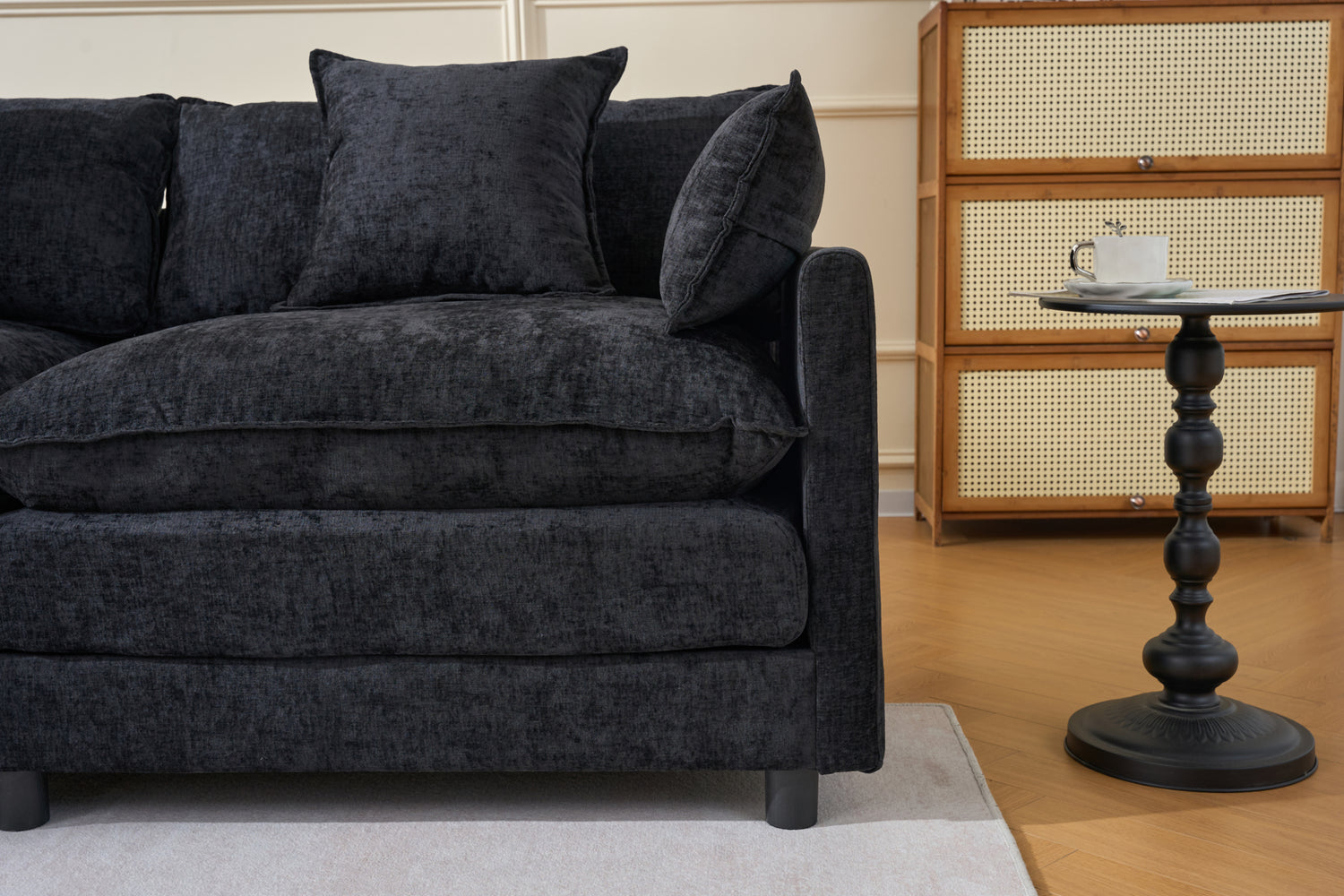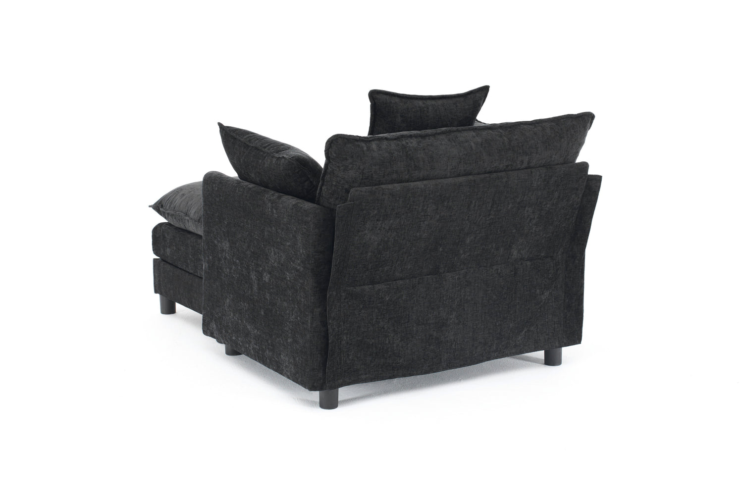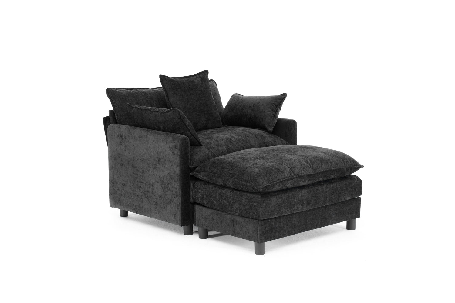 39.4' Modern Accent Chair with Ottoman, Black Chenille Upholstered Armchair