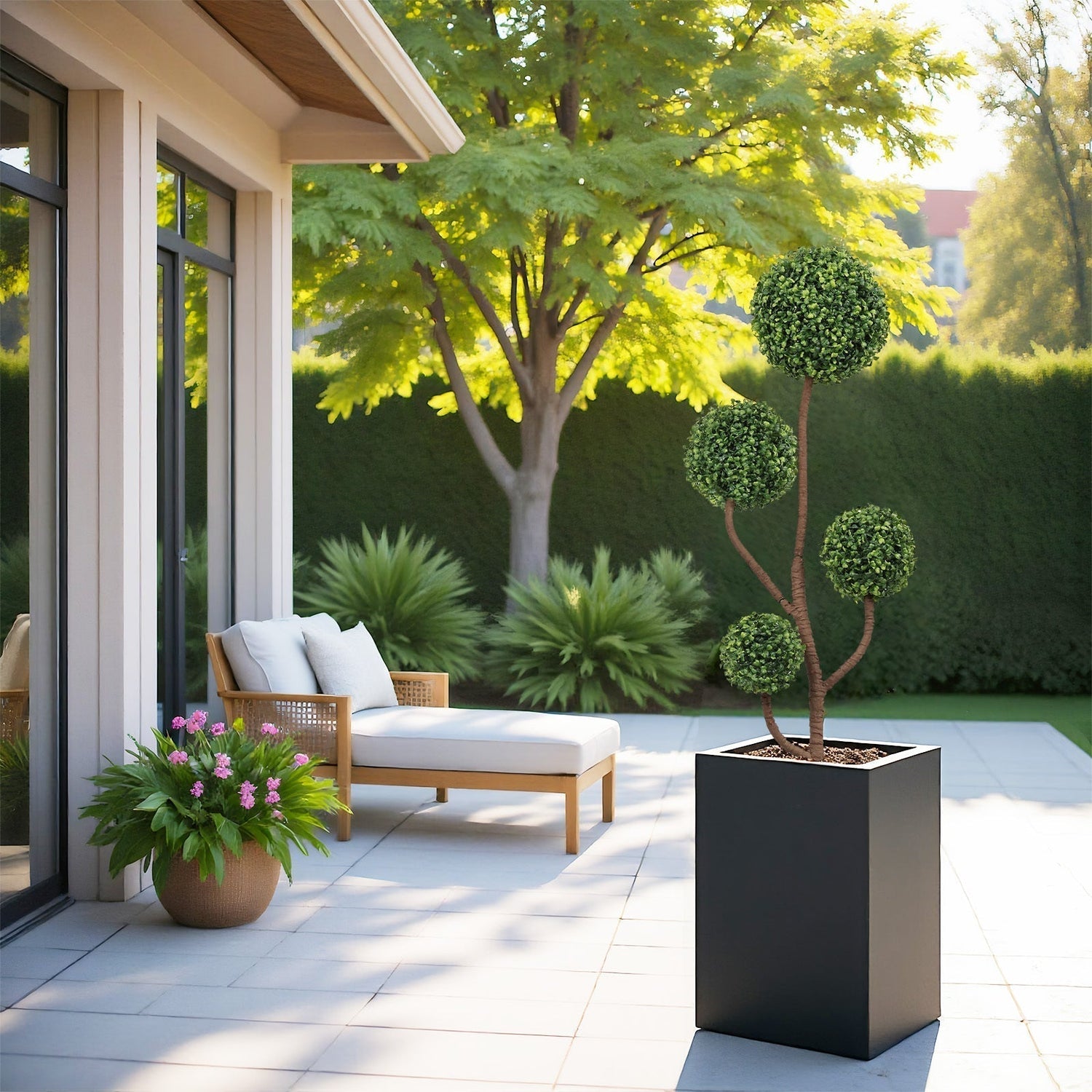 This 4FT tall artificial boxwood topiary tree adds lush greenery to any indoor or outdoor space, such as patios, porches, gardens, or entrances. It combines classic style with easy maintenance to enhance your decor.
