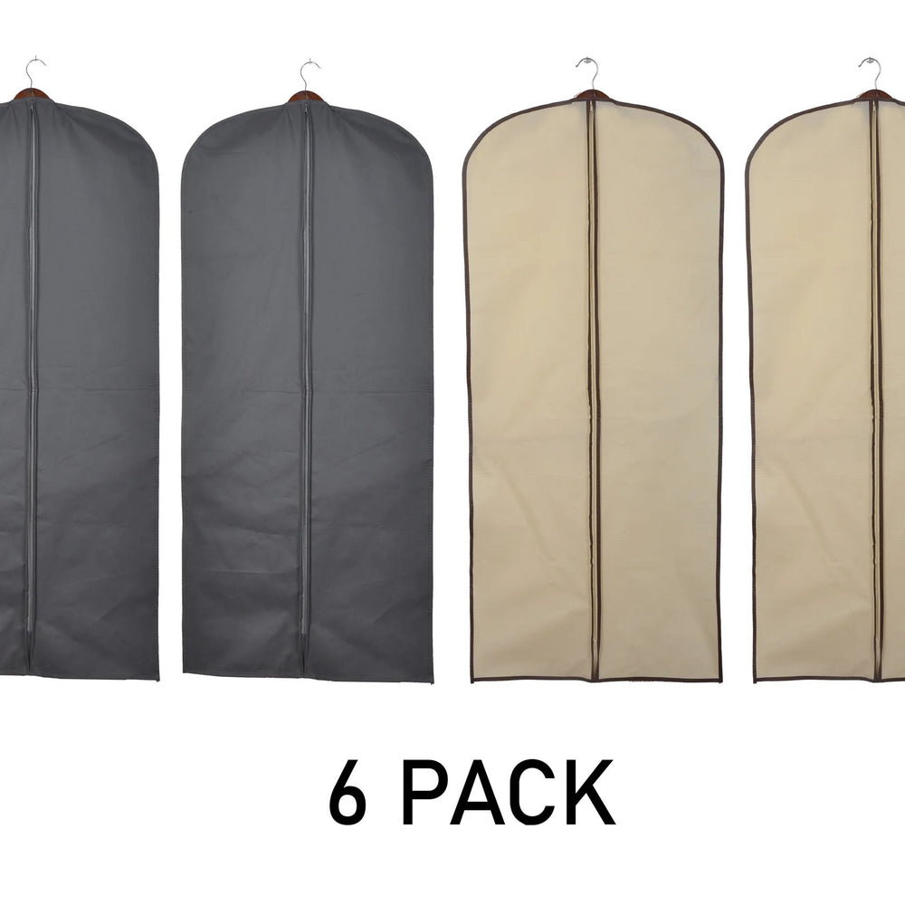 This set of six garment bags is designed to protect suits, dresses, and other hanging clothes during storage and travel, suitable for closets and garment racks.