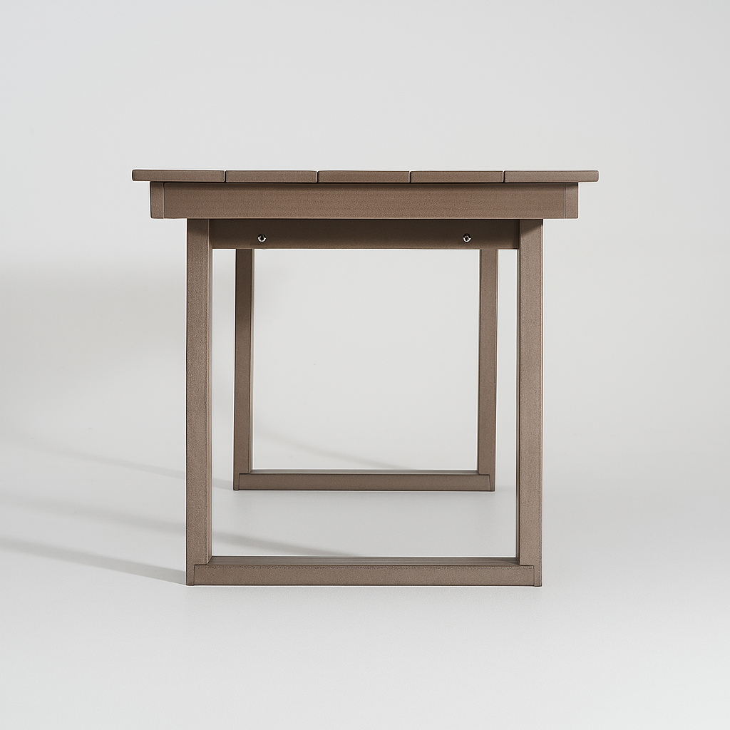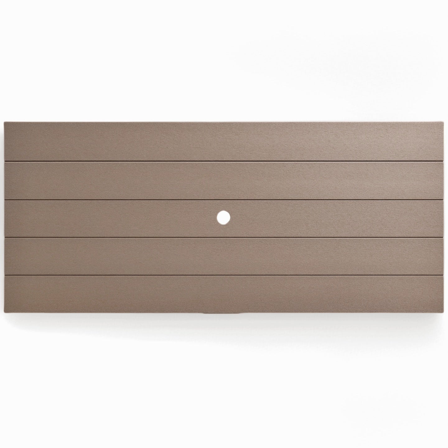 - Rectangular table equipped with a built-in 1.96-inch diameter umbrella hole for added shade