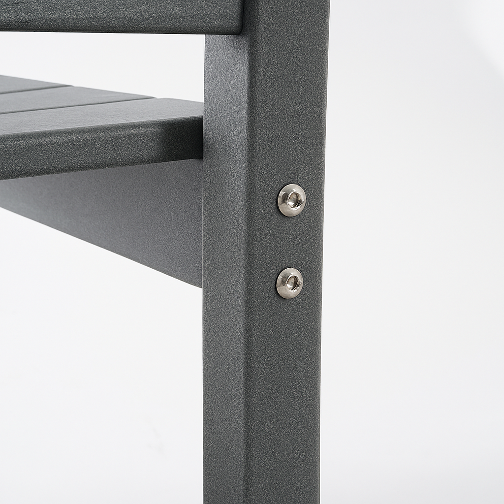 - Modern aesthetic in a grey finish that complements various outdoor settings