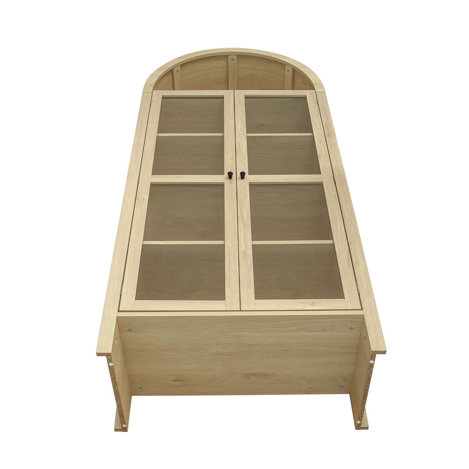 • Elegant arched top with transparent acrylic doors for clear item visibility