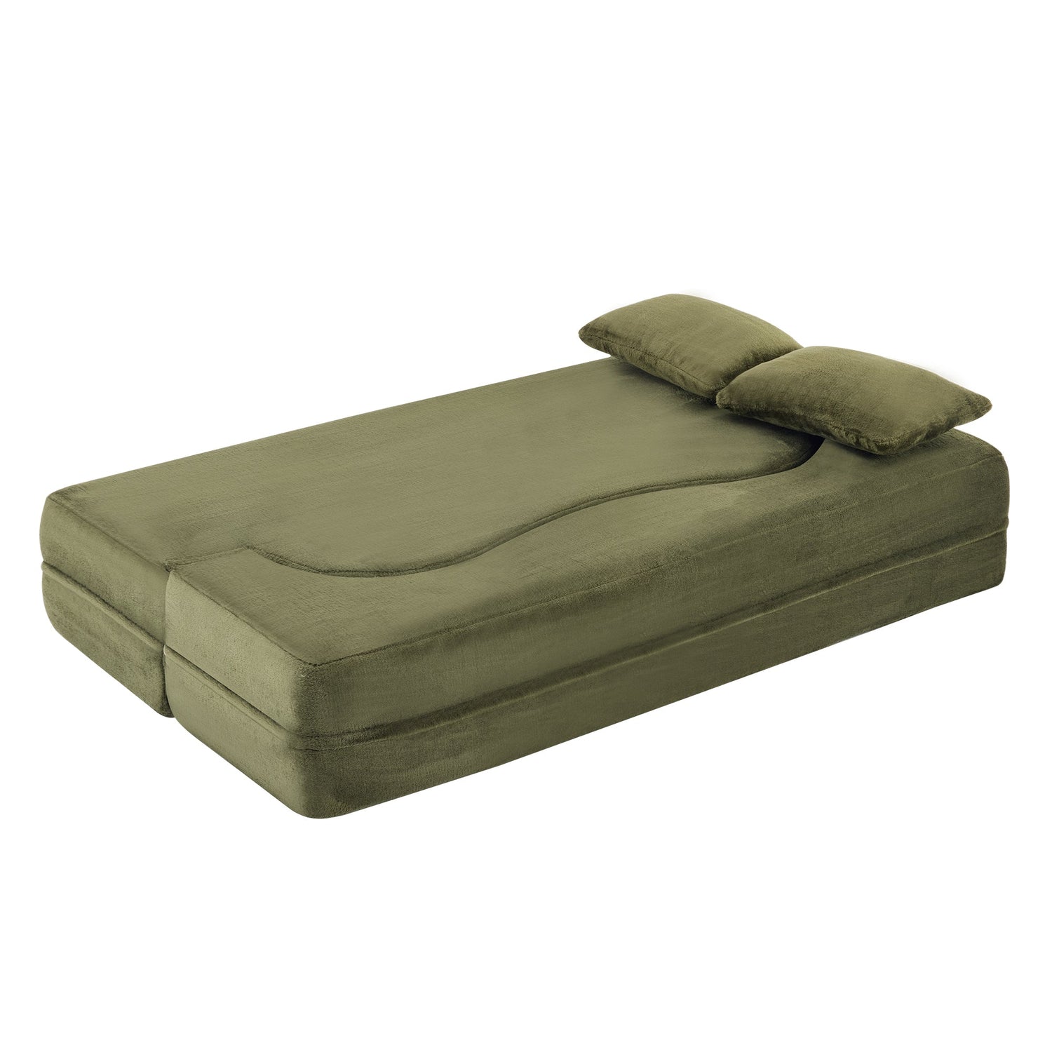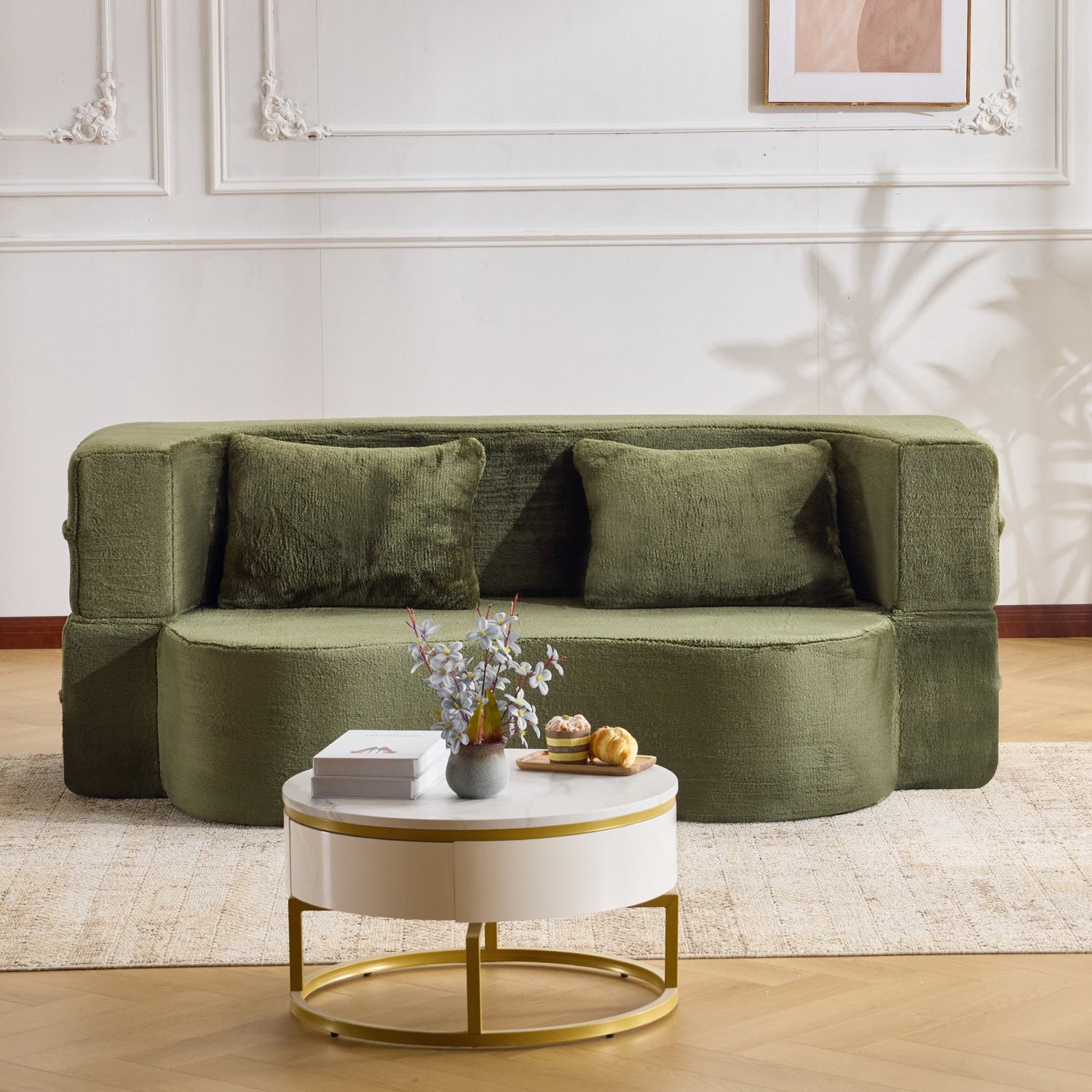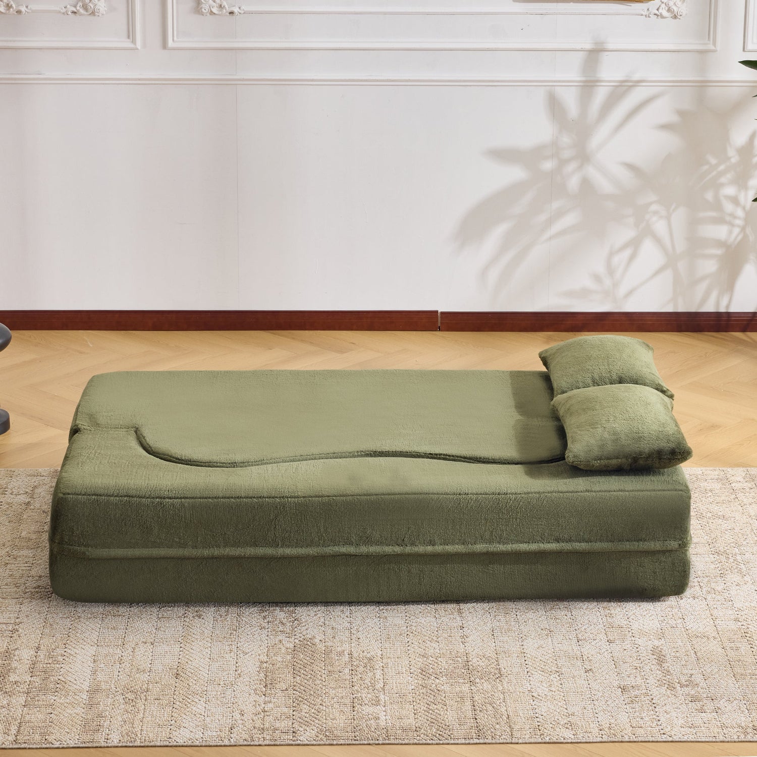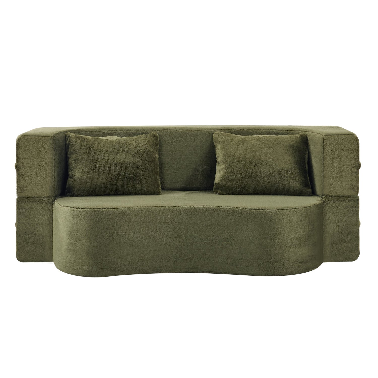 This 71-inch folding sofa bed in green plush faux fur combines comfort and versatility, ideal for primary living spaces. It functions as a futon sofa, couch, or mattress, fitting seamlessly into modern home decor.