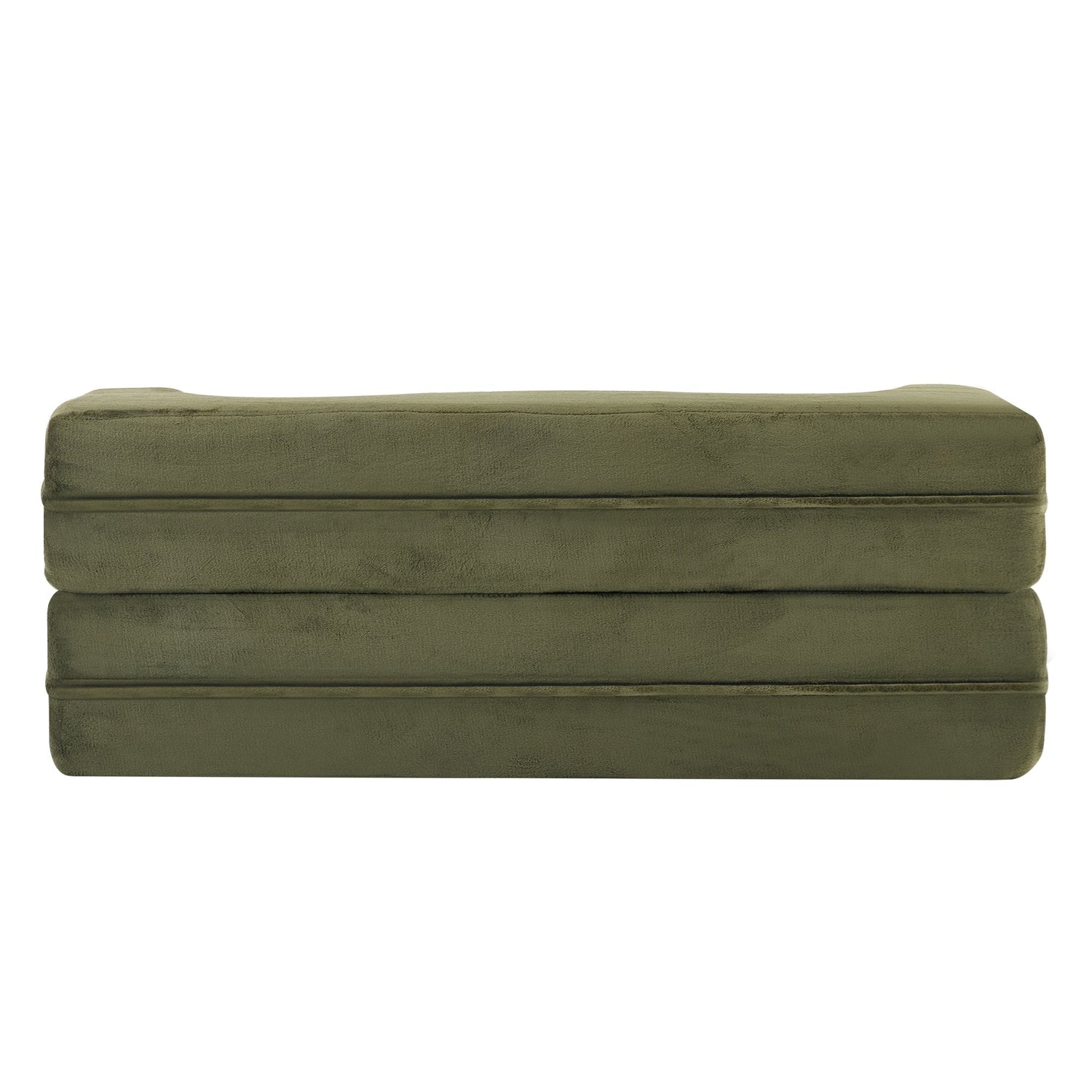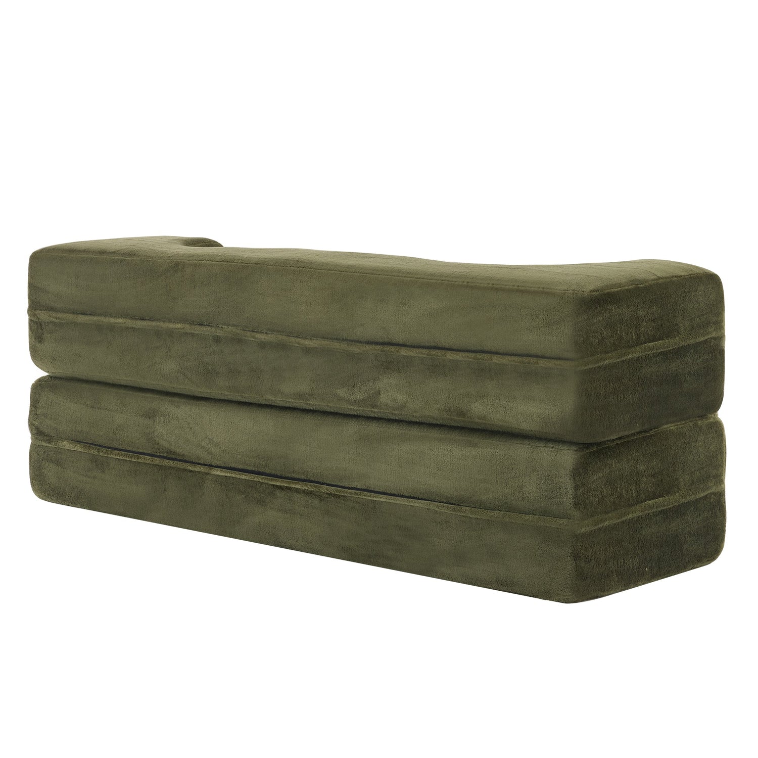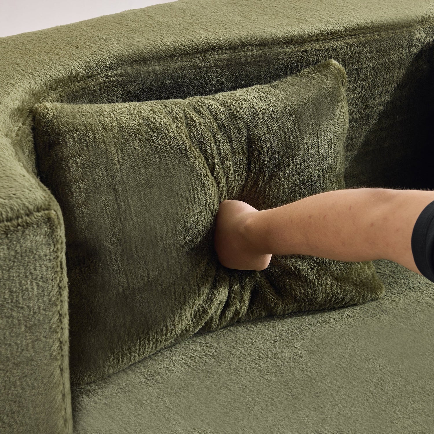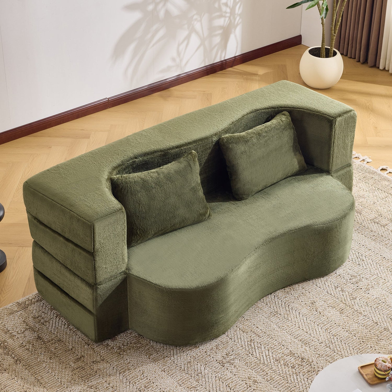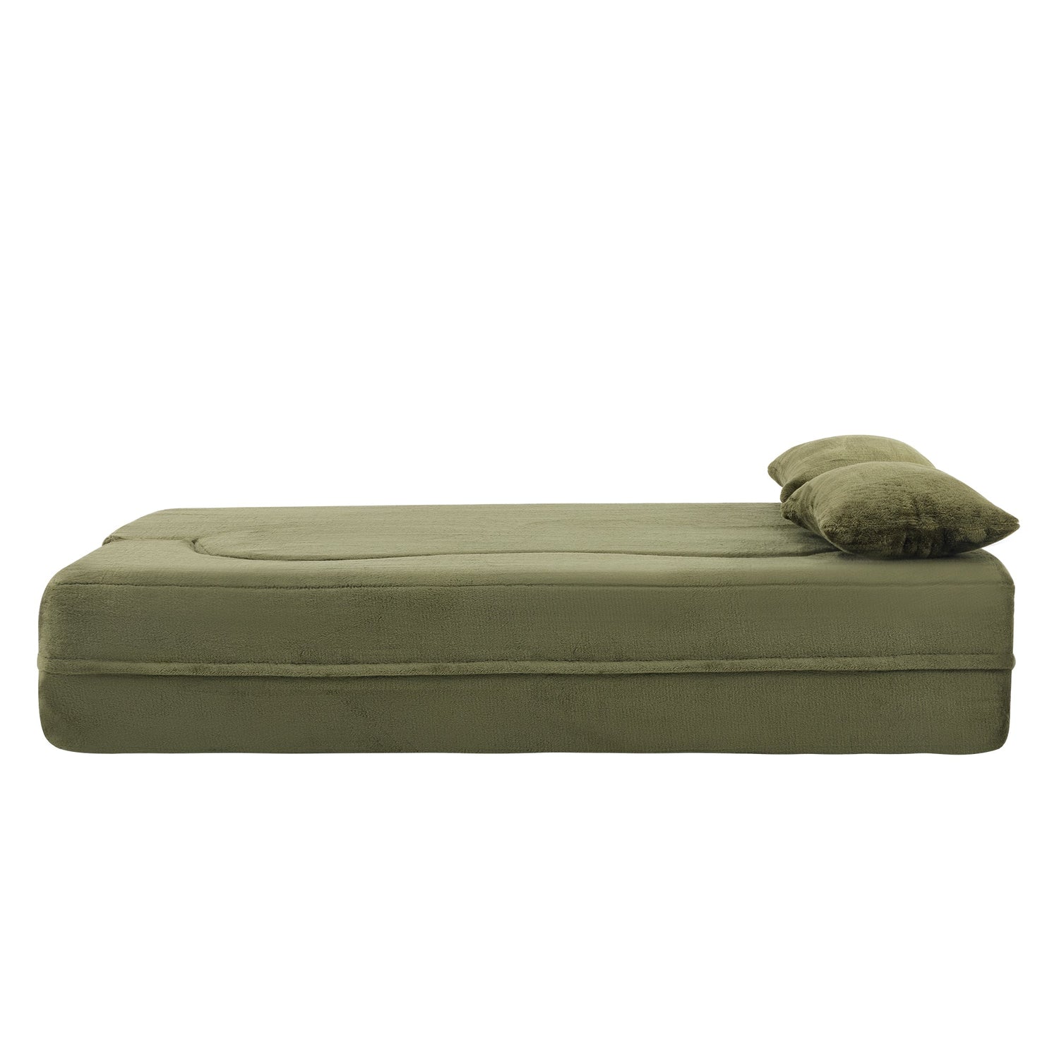 This 71-inch folding sofa bed in green plush faux fur combines comfort and versatility, ideal for primary living spaces. It functions as a futon sofa, couch, or mattress, fitting seamlessly into modern home decor.