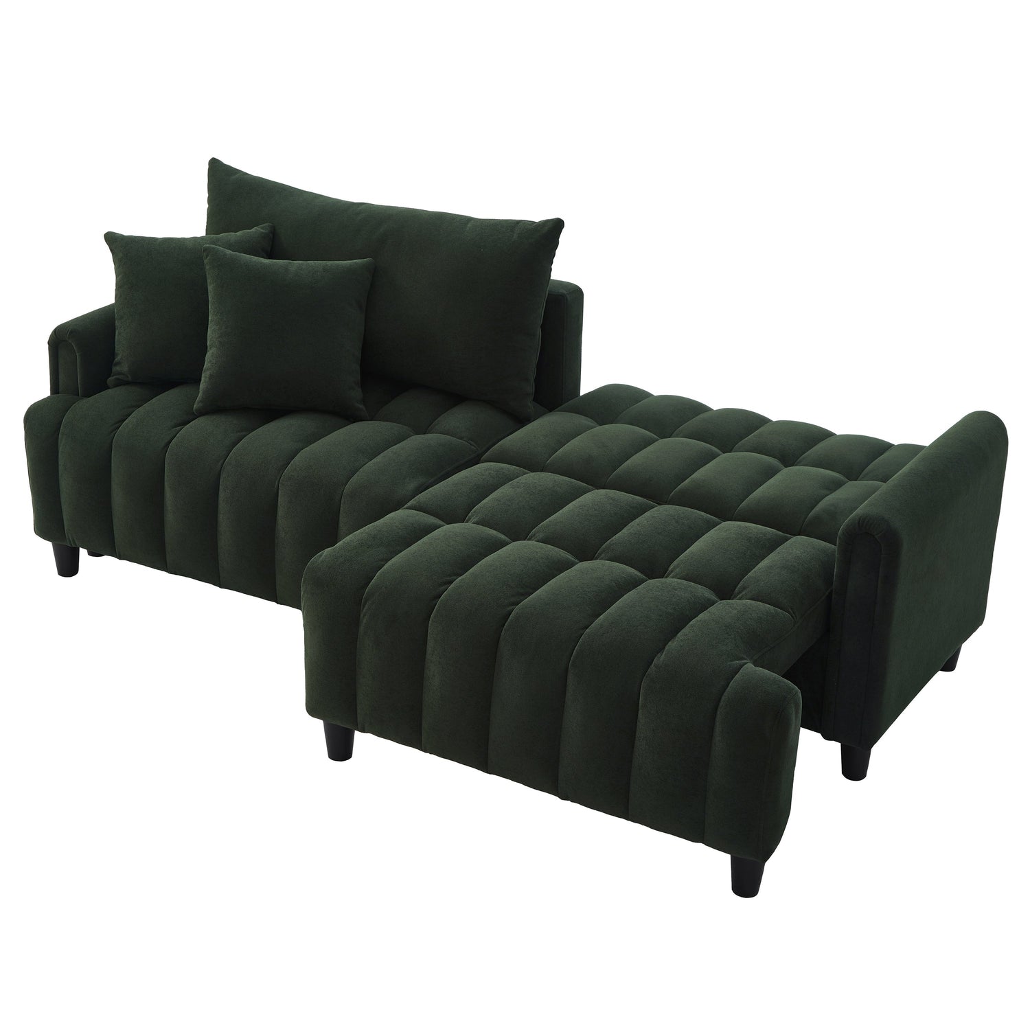 83'' Futon Sofa Bed with Polyester Fabric and 2 PillowsDark Green