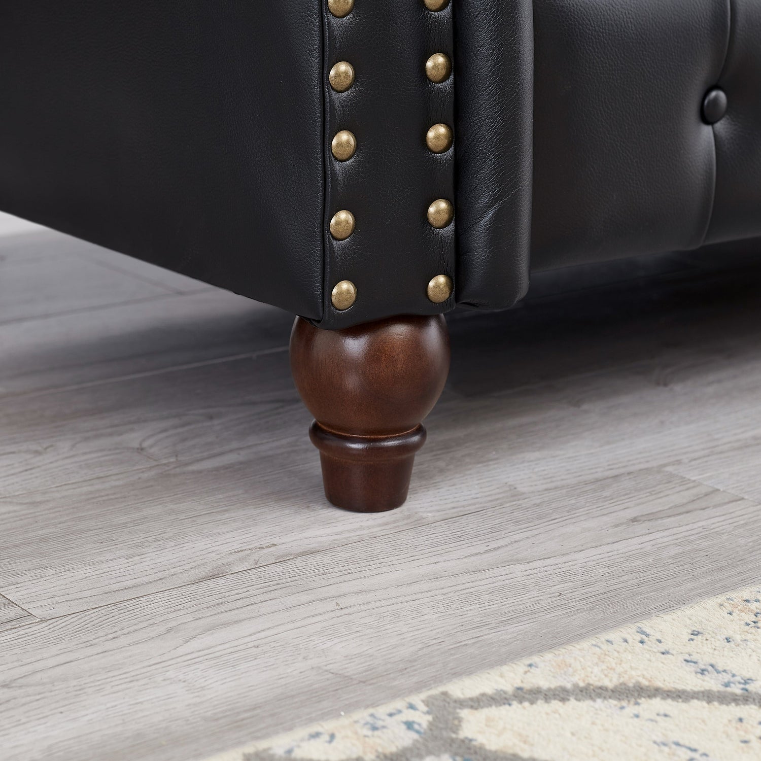 85.8' Living Room Chesterfield Sofa Classic Tufted Design Faux Leather PU Upholstered Sofa with Storage (Black)