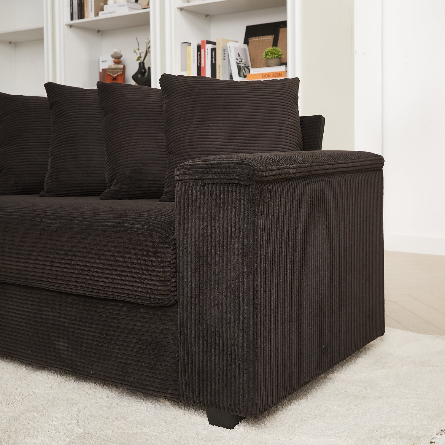 - [Versatile Minimalist Design]: Designed to elevate your living space, this oversized living room couch features a modern, simple square design that is both stylish and functional. The corduroy fabric adds a luxurious texture, making it a perfect choice for both aesthetic appeal and lasting durability. This L Shape sectional set invites you to sink in and relax, creating an inviting atmosphere in your home.