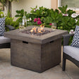 The Anchorage 32'' Wood Square MGO Fire Pit in Brown is designed for outdoor use, creating a warm and inviting atmosphere on patios or in backyards. Combining style and function, it serves as a centerpiece for gatherings on cool evenings.