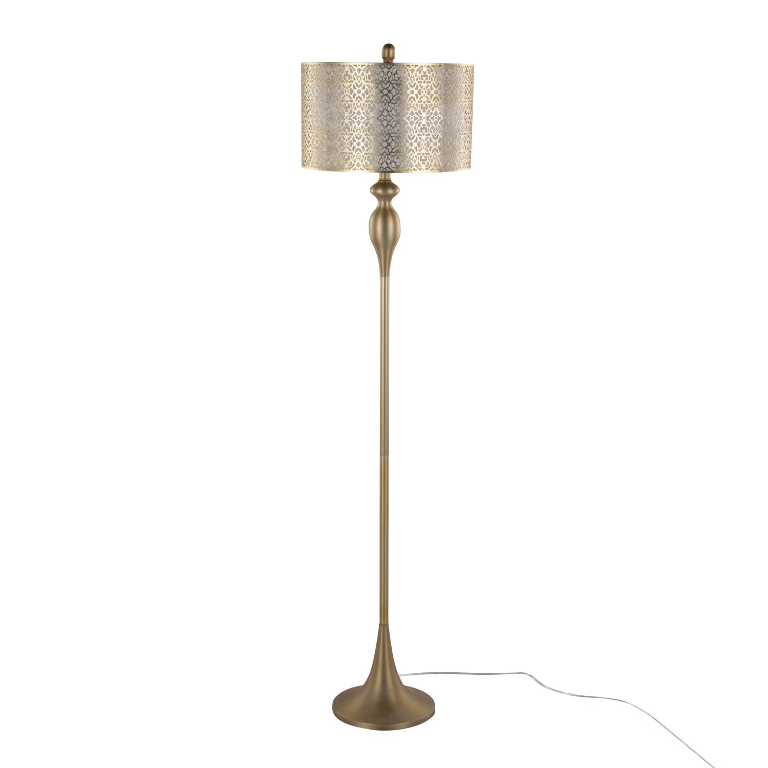 The Ashland 63' Contemporary Metal Floor Lamp offers stylish and functional illumination, ideal for enhancing living rooms, bedrooms, offices, or reading areas with a sophisticated gold plated metal body and an off-white linen shade.