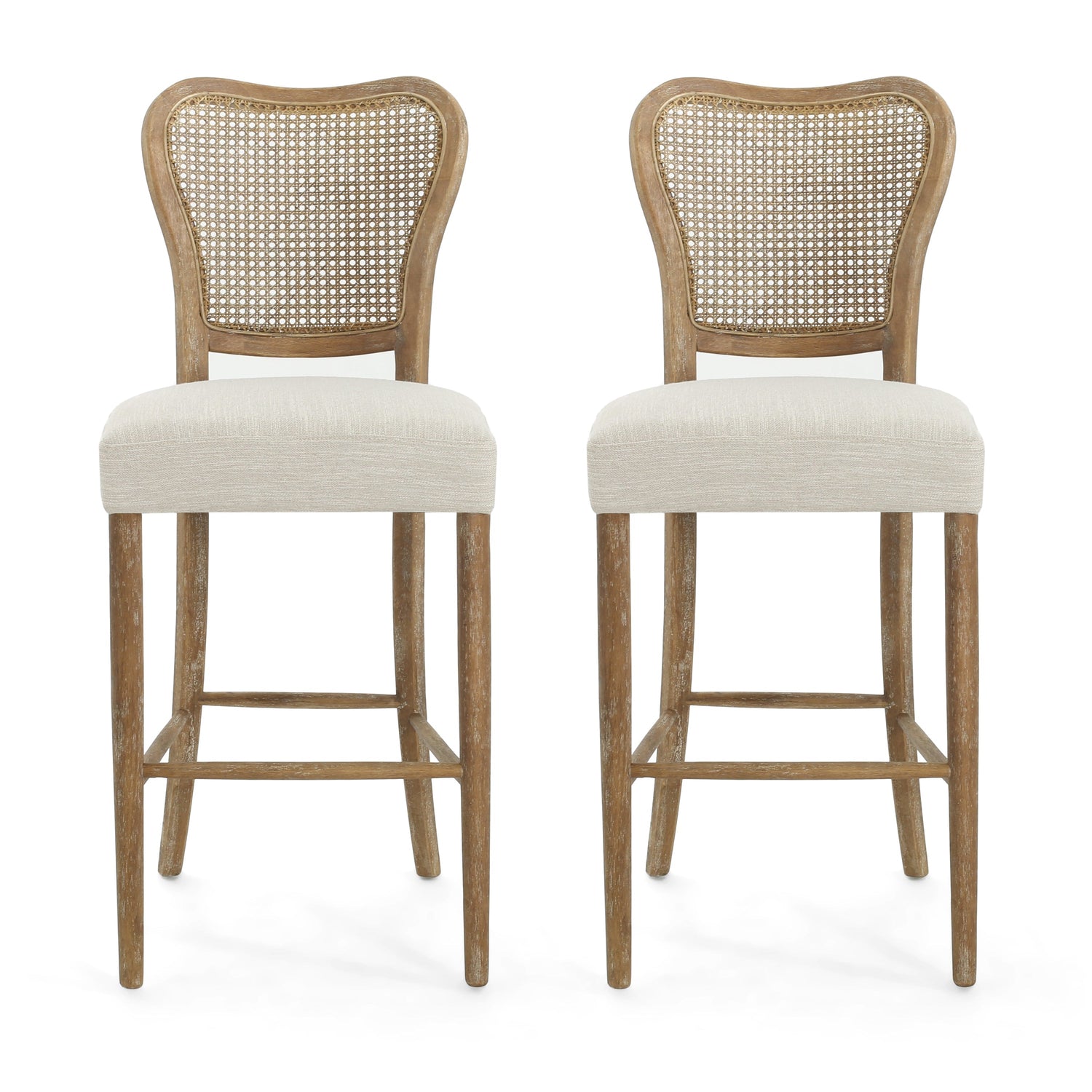 Cane-Back Upholstered Bar Stools Set of 2
