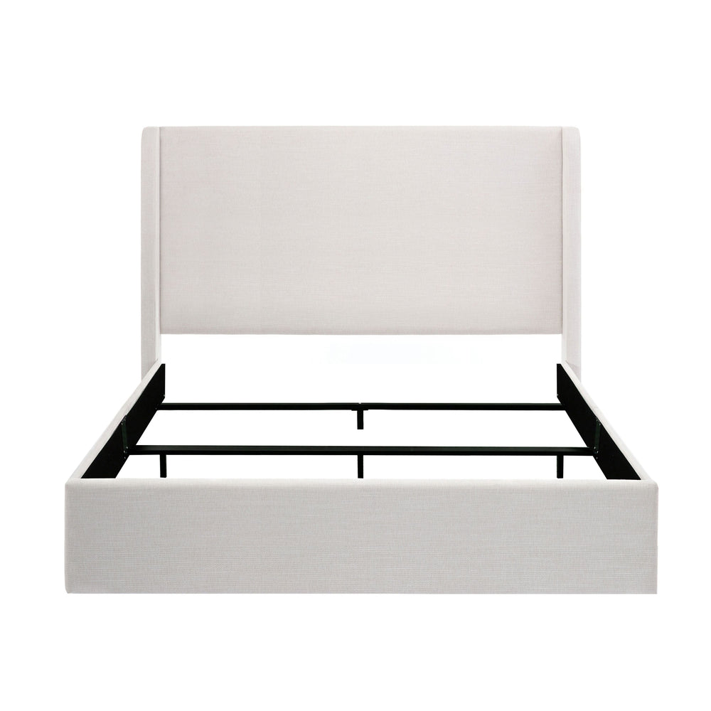 Caron Upholstered Wingback Bed with 52.3' High Headboard in Textured Ivory Canvas Chenille, King Size