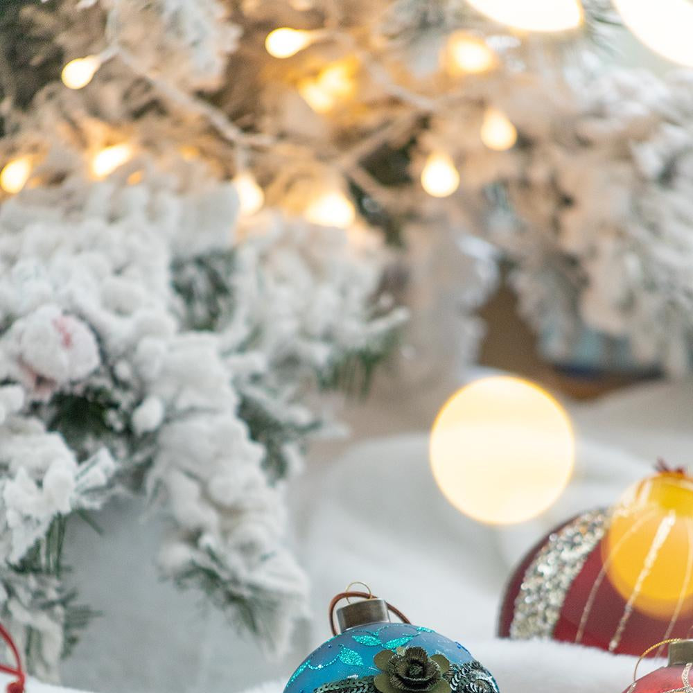 These light blue glass Christmas ball ornaments are designed to enhance holiday decor with a blend of classic and modern style. Ideal for hanging on Christmas tree branches, they add an elegant and inviting touch to any festive setting.