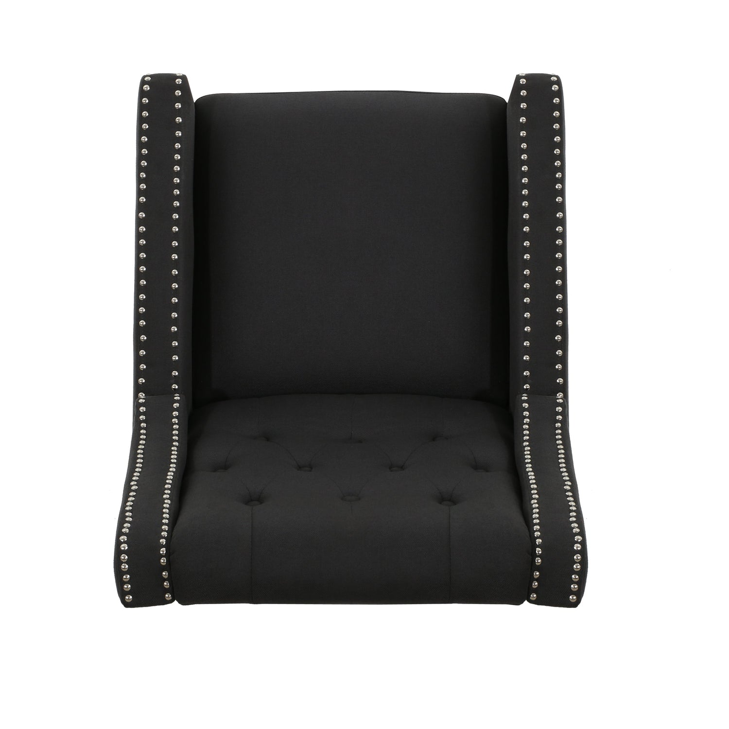 Classic Dark Grey Fabric Push Back Chair with Riveted Armrests