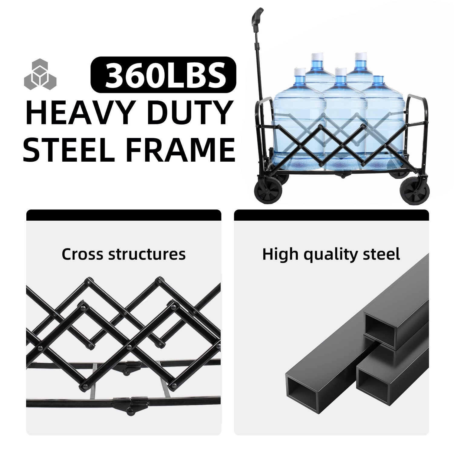 - Converts between a heavy-duty wagon, trunk organizer, and pet wagon with removable wheels