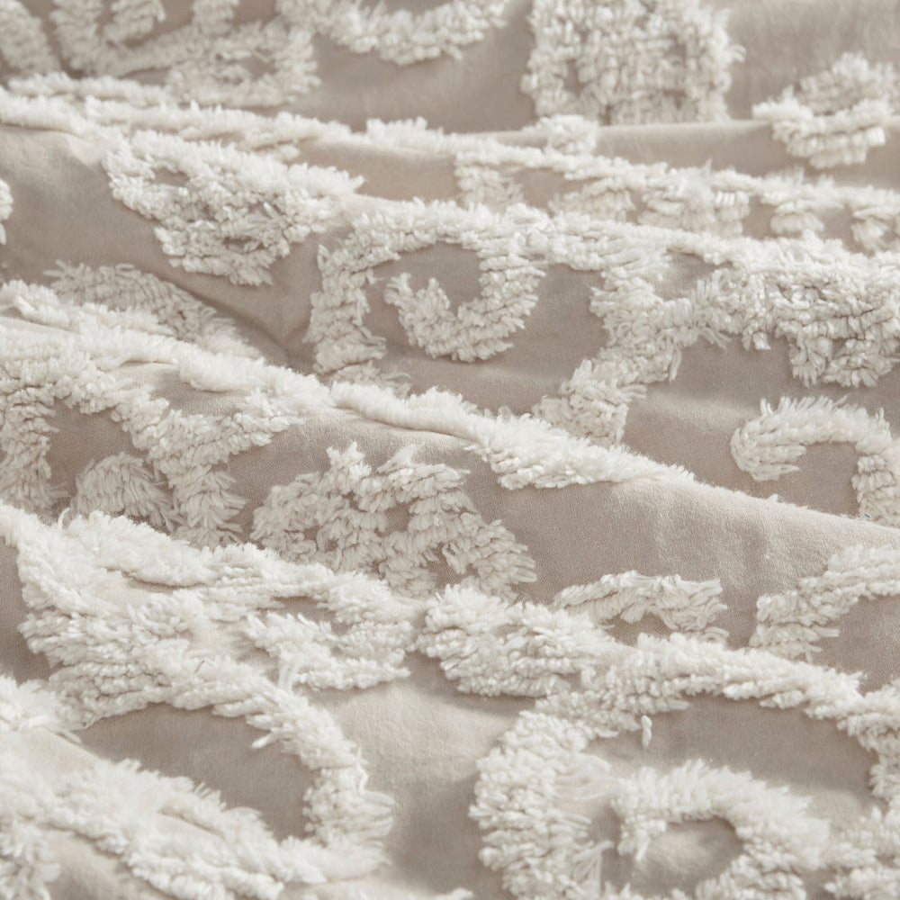 The Cotton Comforter Mini Set in Taupe is a king-size bedding collection designed to enhance the bedroom with warmth and elegant texture. It combines softness and detailed embroidery for a cozy and refined sleep environment.