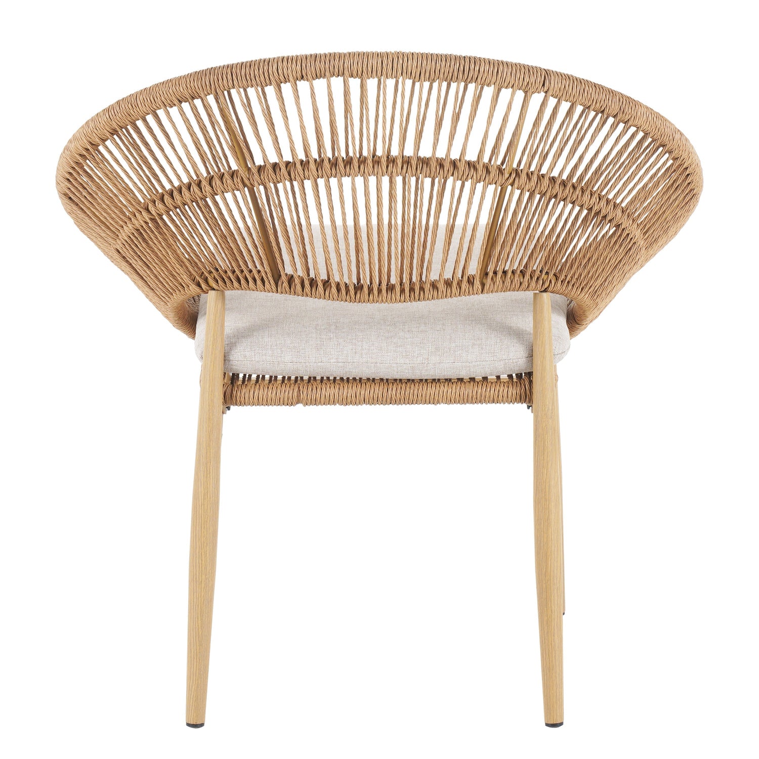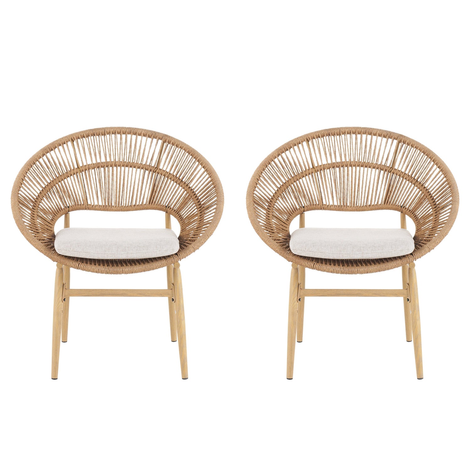 Cyril Outdoor Wicker Papasan Style Dining Chairs with Teak Legs - Set of 2