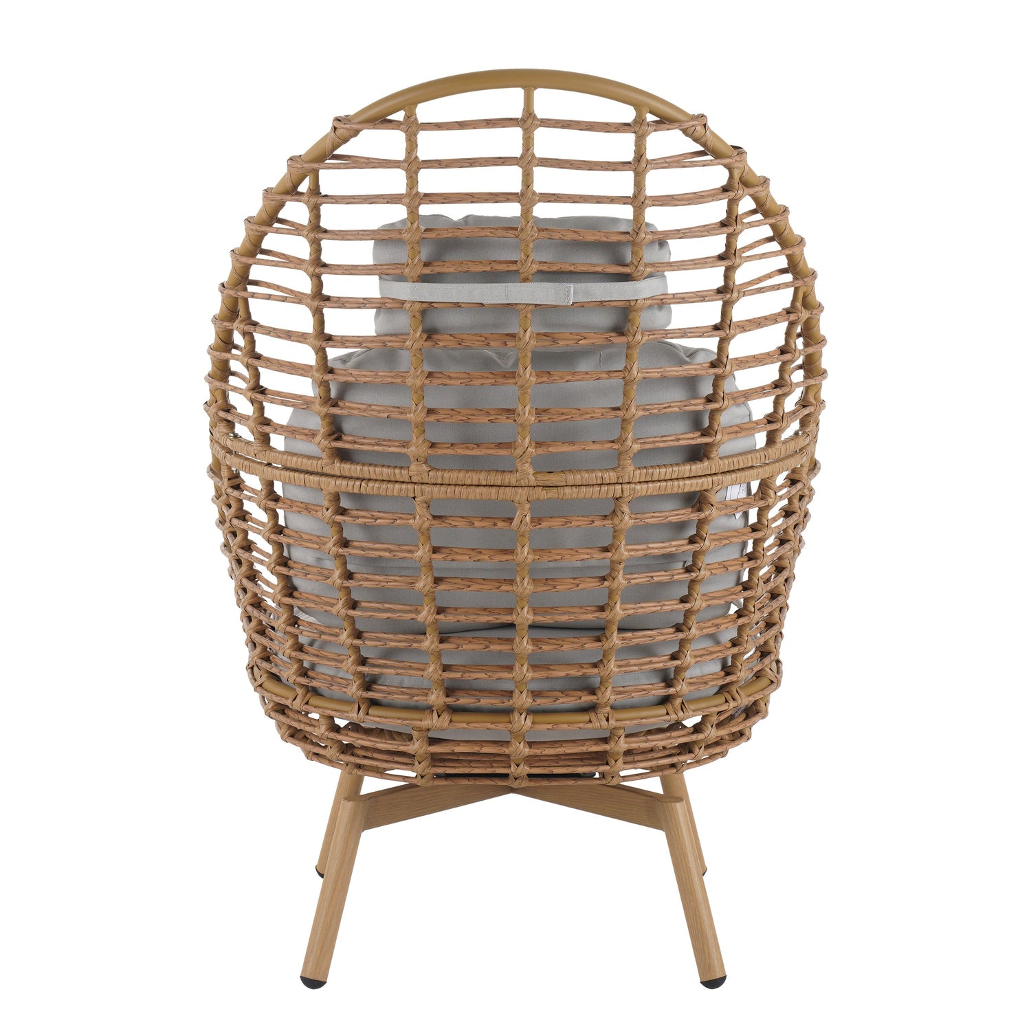 The Ellis Outdoor Wicker High-Back Swivel Lounge Chair is designed for garden and patio spaces. It combines comfortable seating with a stylish, natural aesthetic, perfect for relaxing outdoors.