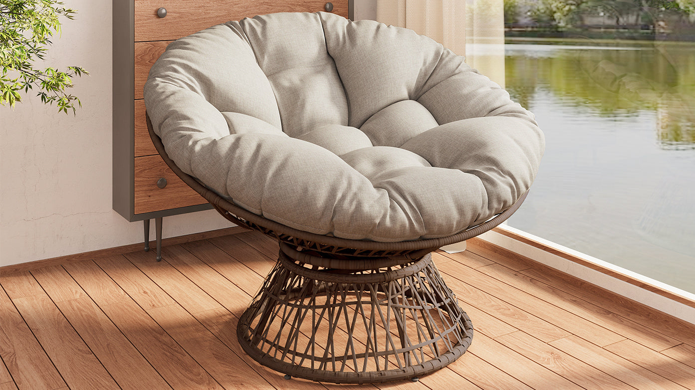 Ergonomic Wicker Chair with Cloud Density Cushion and Swivel
