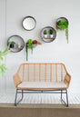 This set of five farmhouse-style round metal wall planters provides a versatile vertical garden solution ideal for living rooms, patios, or entryways. It combines functionality with rustic charm to enhance your décor while offering space for greenery or decorative accents.