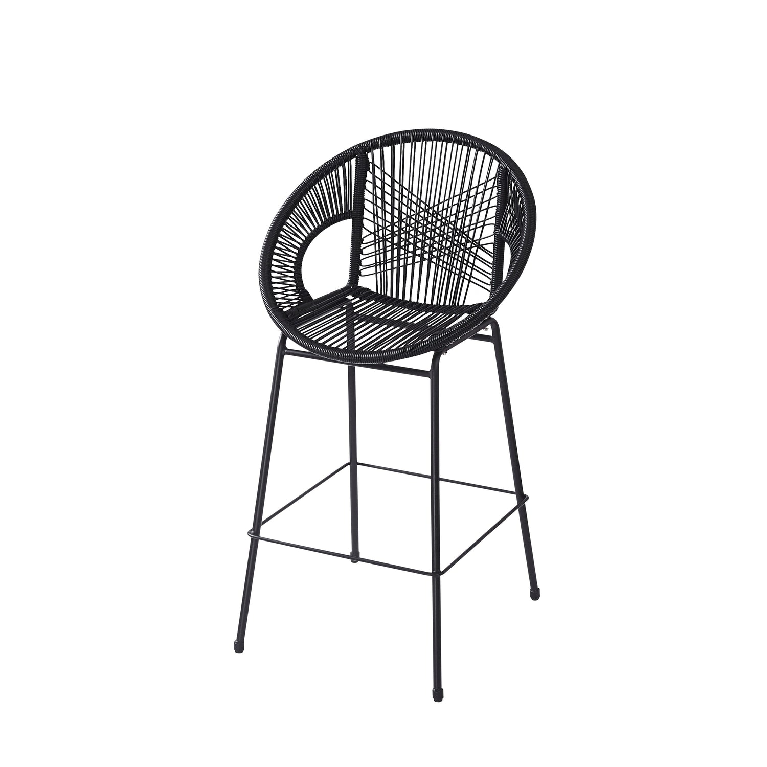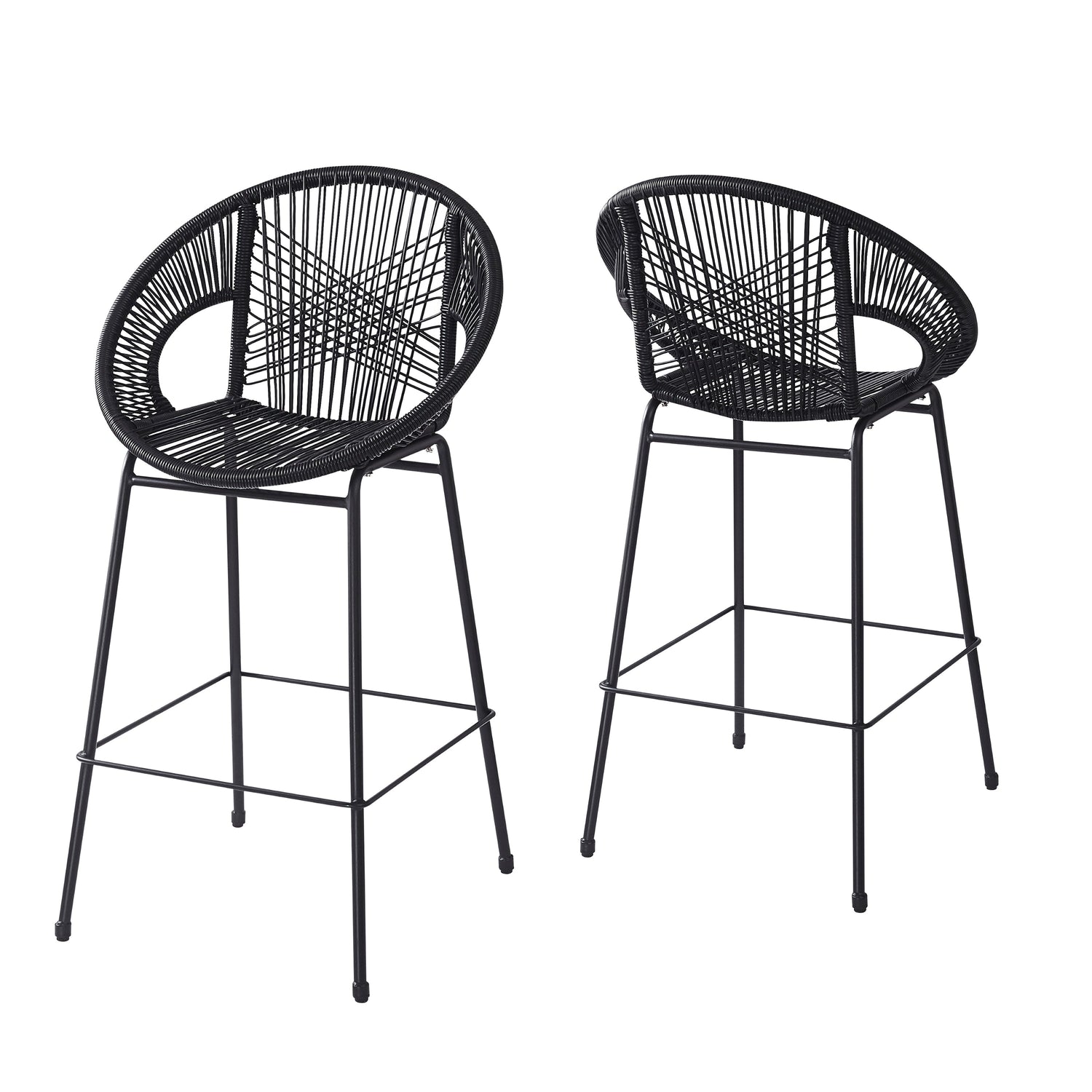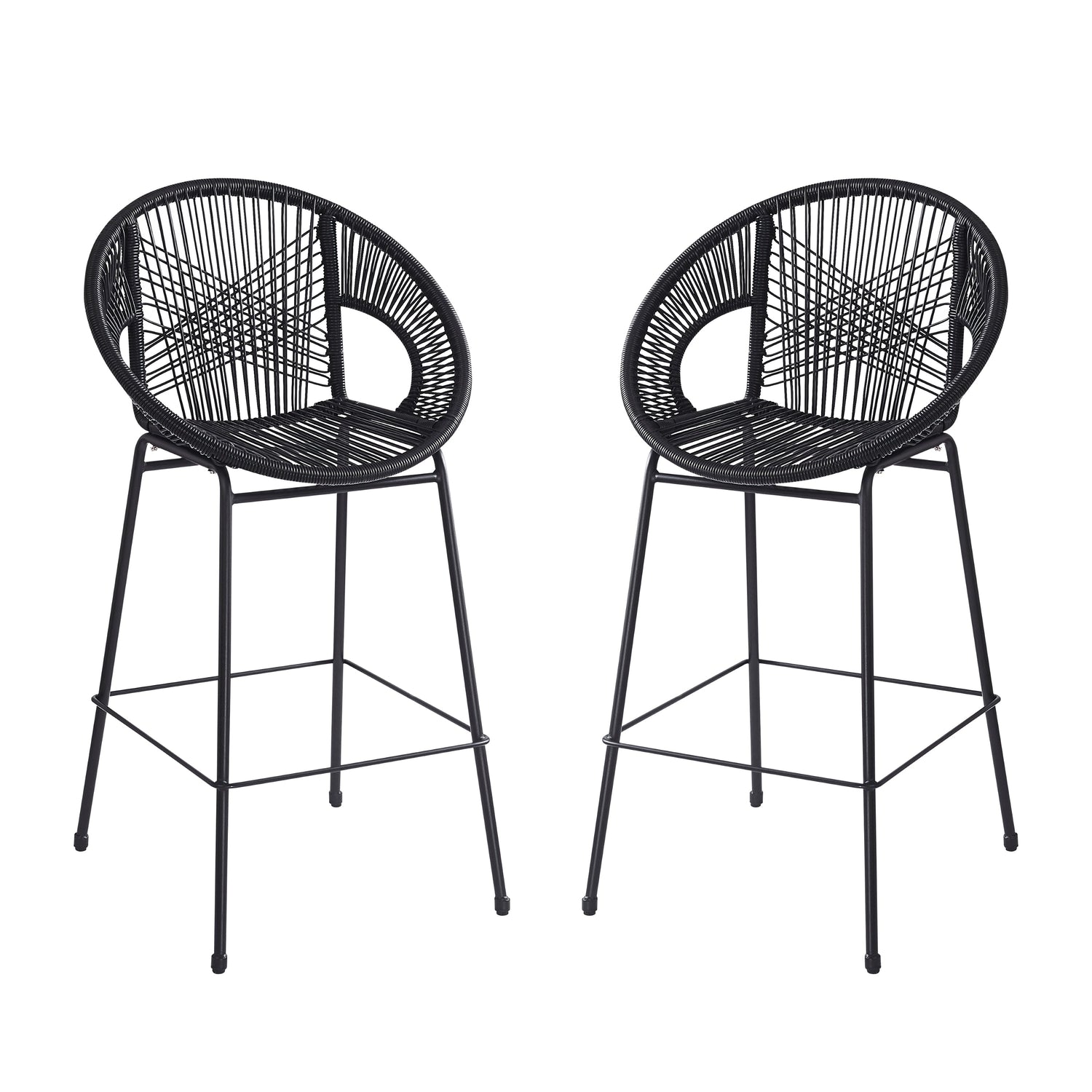 Ferrara Outdoor Patio Barstool Set of 2 - Black Faux Wicker PE Rattan with Iron Frame