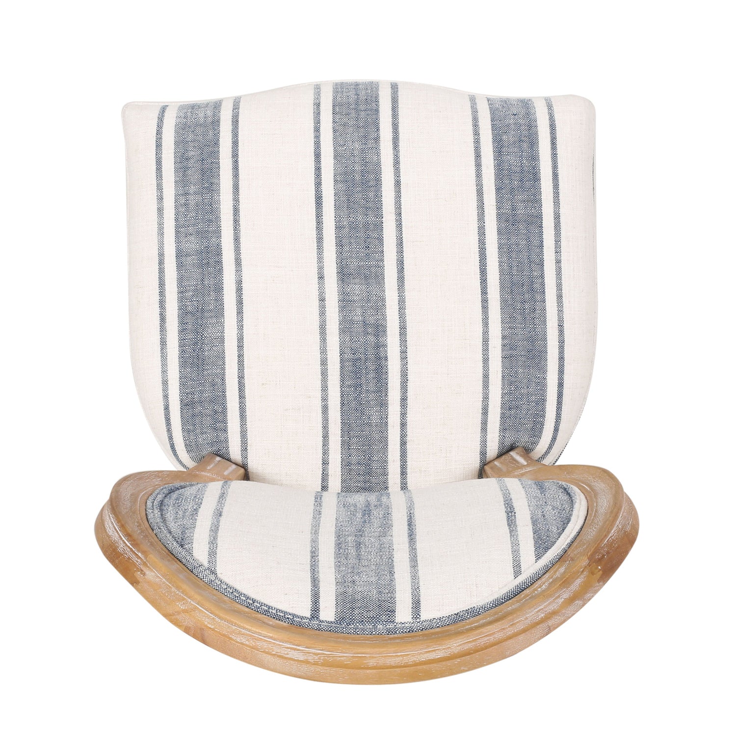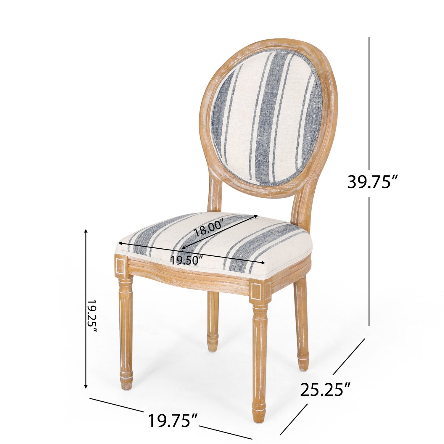 This French country-inspired KD dining chair features an iconic round backrest upholstered in blue fabric, ideal for adding a touch of classic elegance to your dining room.