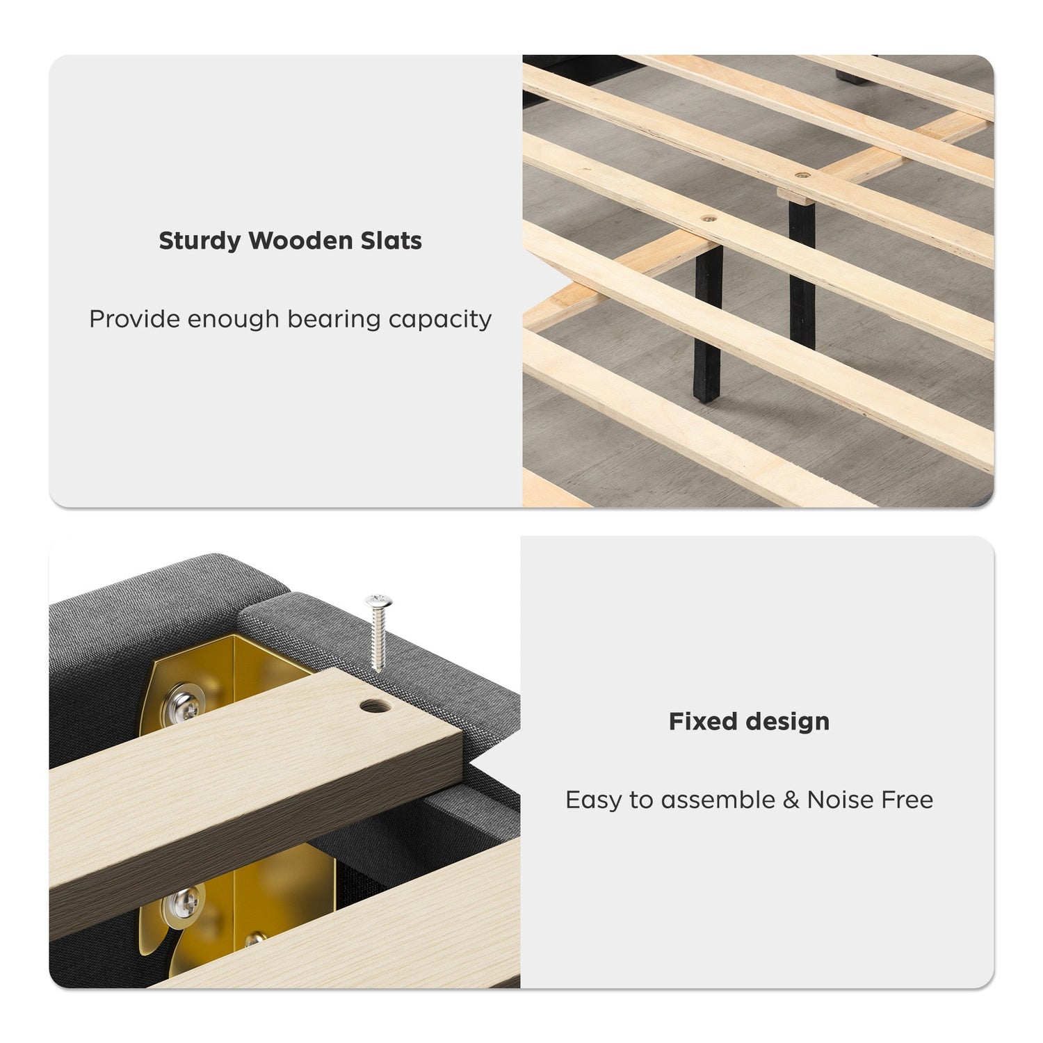 This Full Bed Frame is designed for bedroom use, combining strong functionality with modern style. Featuring a linen storage headboard, it offers convenient organization while enhancing your room's decor.