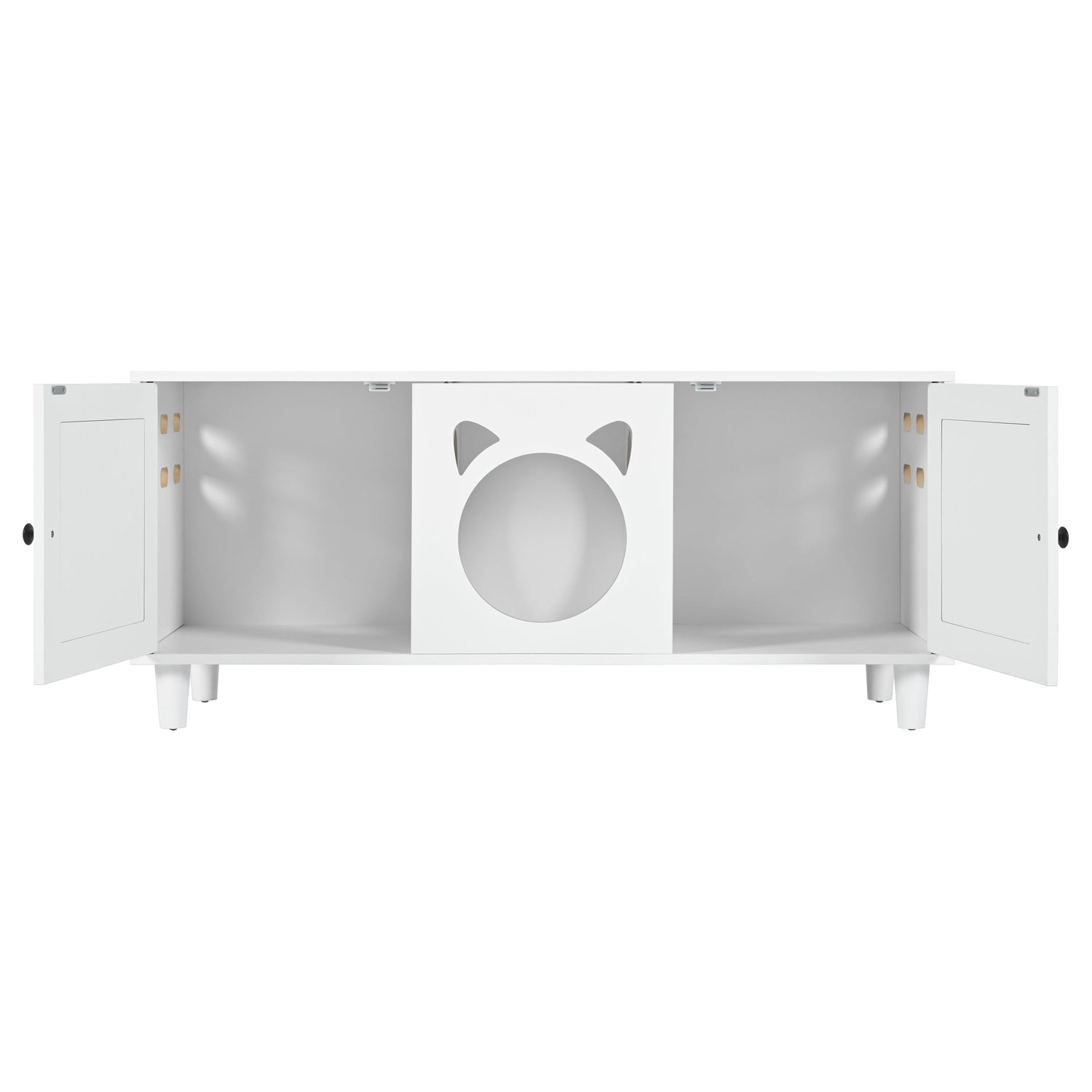 - Multi-functional use as a litter box enclosure, scratching station, and side table