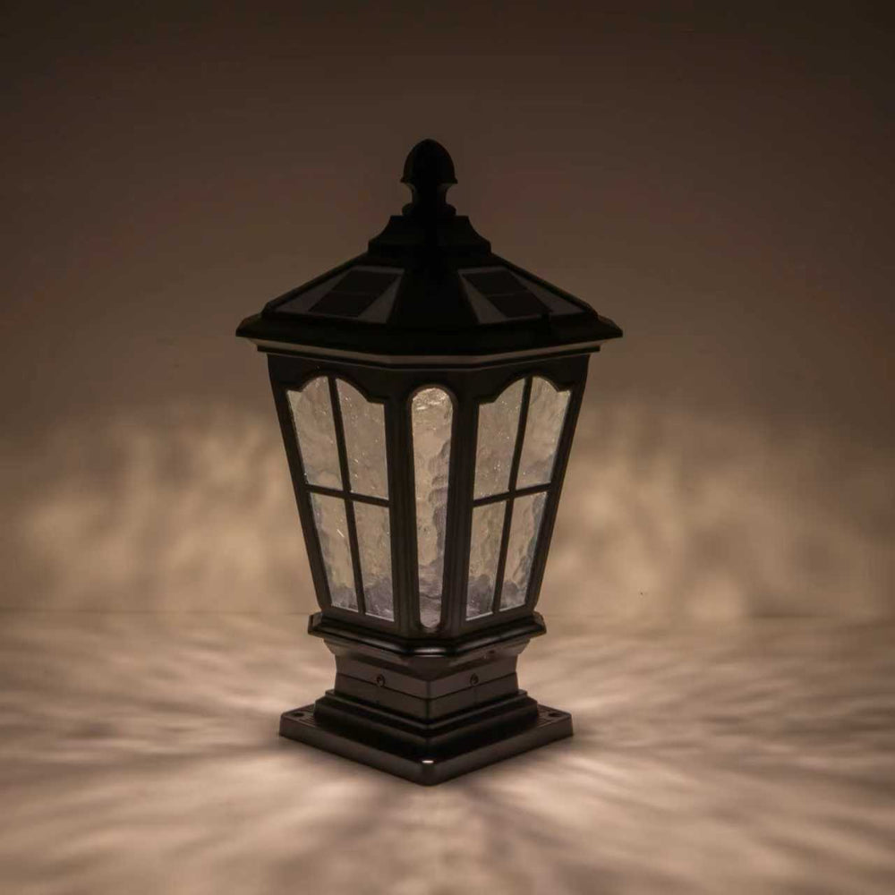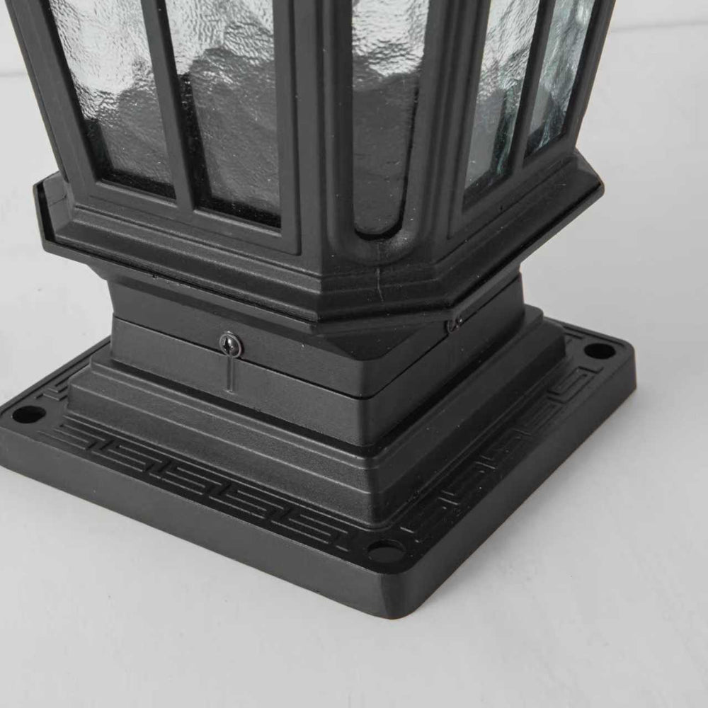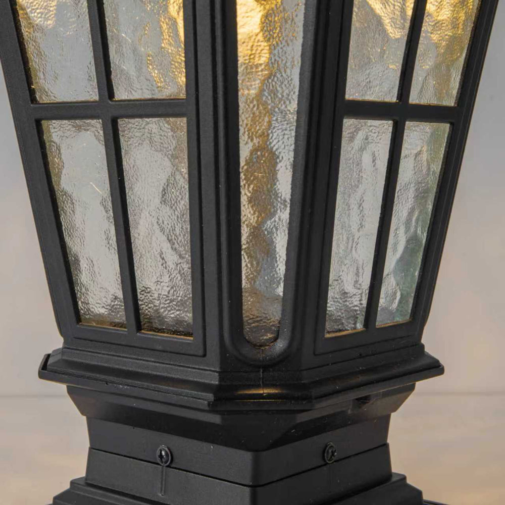 The Garden Post Light is a matte black aluminum outdoor column light featuring a vintage European pillar lantern design, ideal for illuminating gardens, patios, porches, and driveways with classic style and durable function.