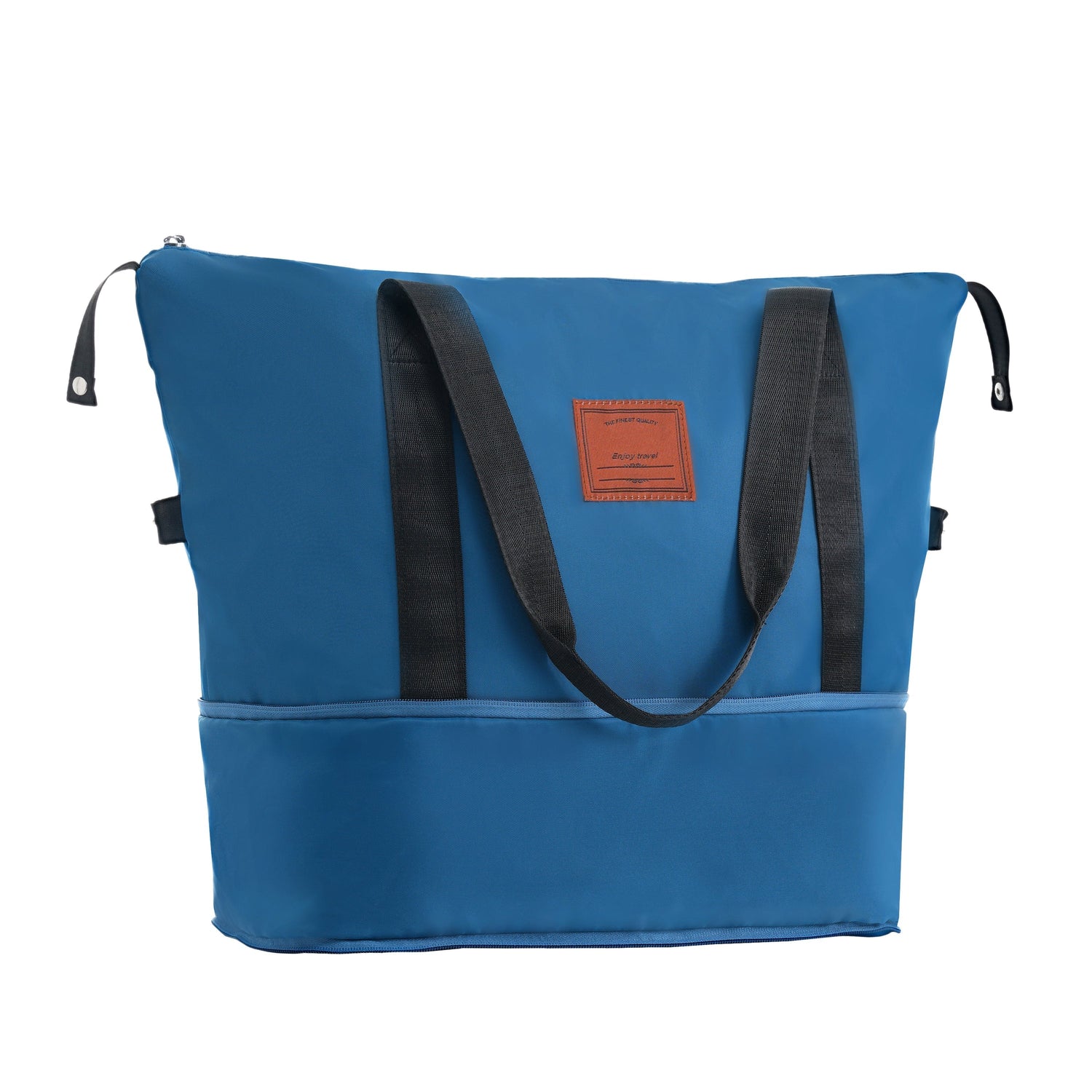- Expandable Weekender Bag: The duffel bag has a trolley sleeve with zippered pockets, allowing convenient hanging on the adjustable luggage handle.