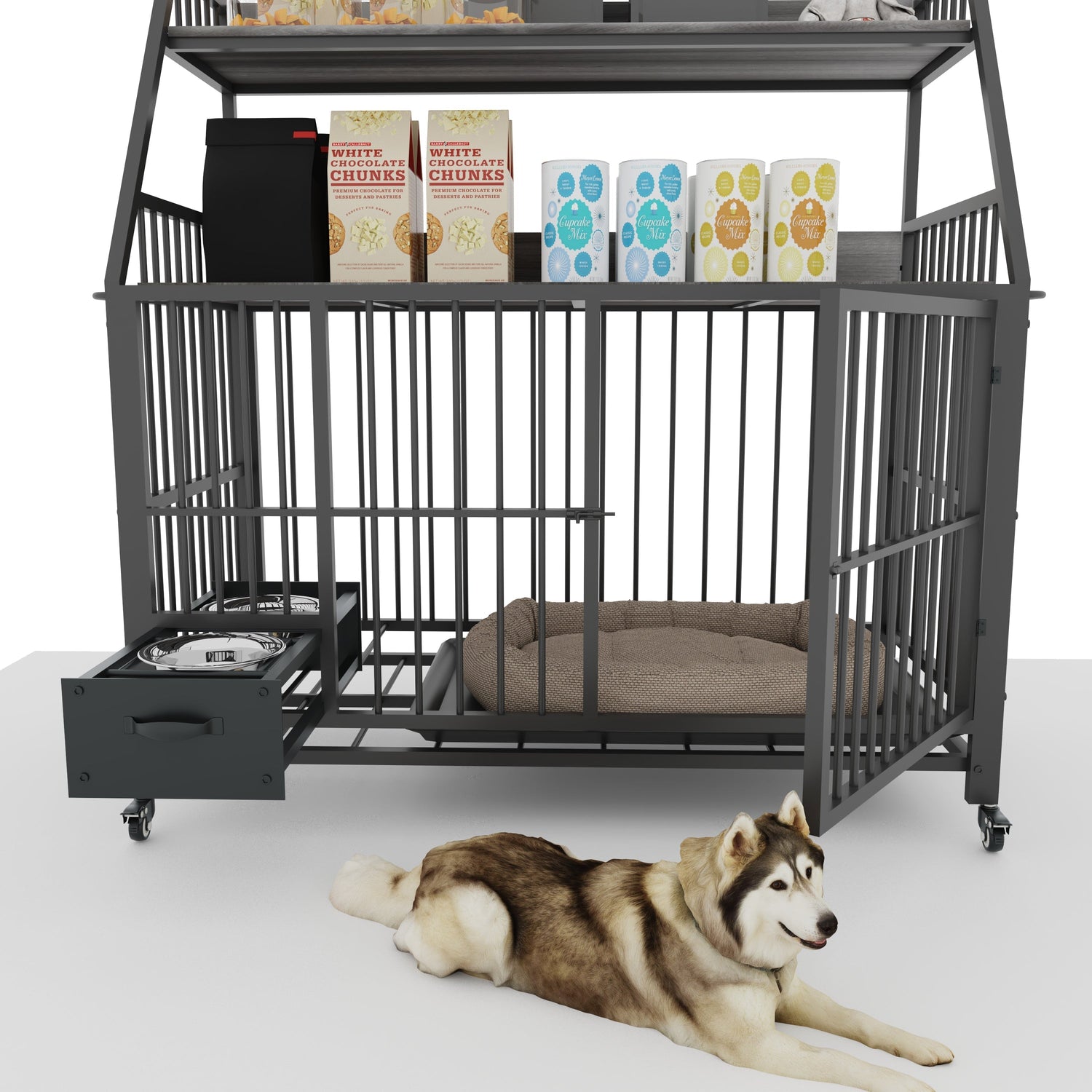 Large Pet Cage with Storage Rack and Stainless Steel Basins