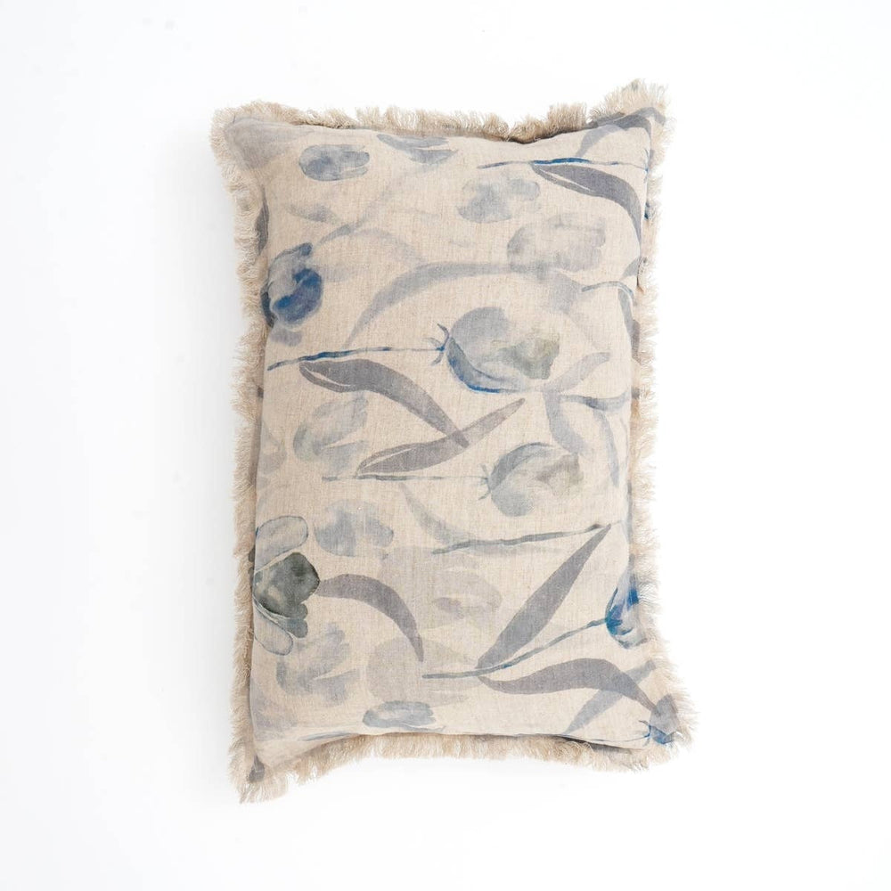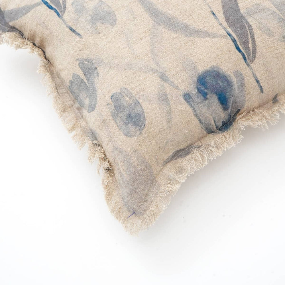This linen printed lumbar throw pillow with fringes adds a stylish and timeless accent to your living room or bedroom. Designed for both comfort and aesthetics, it complements a variety of interior decors.