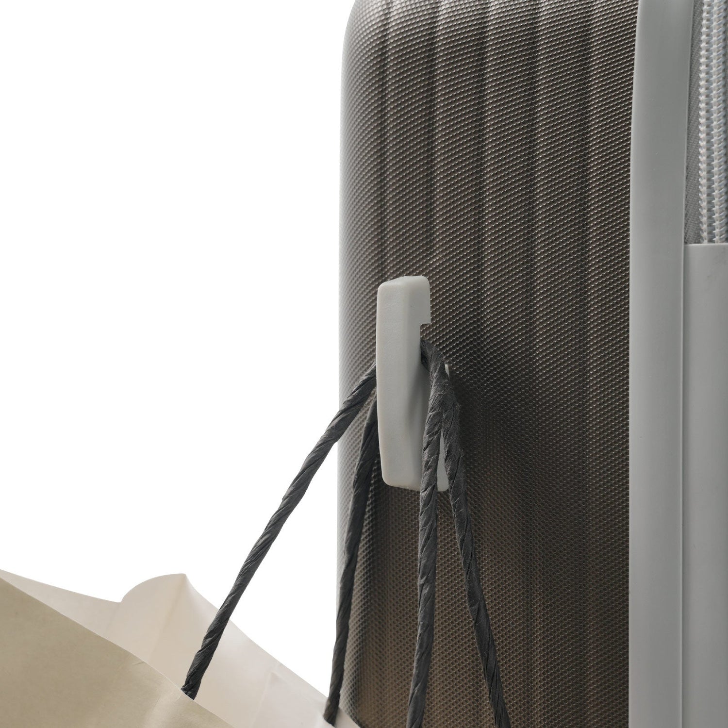 - Convenient side hooks on 24" and 28" suitcases to hang additional bags or shopping totes