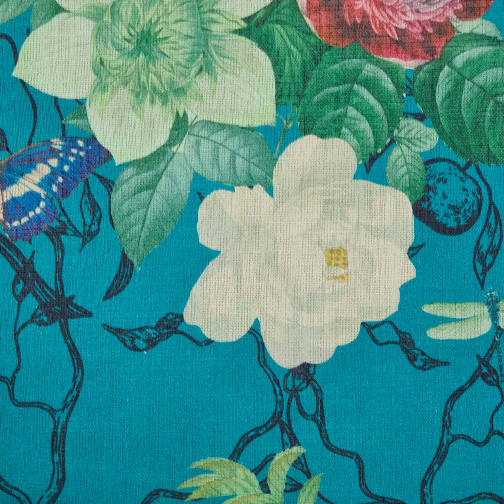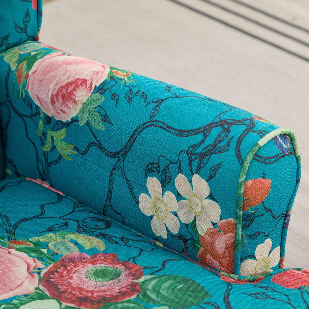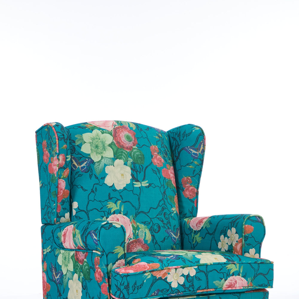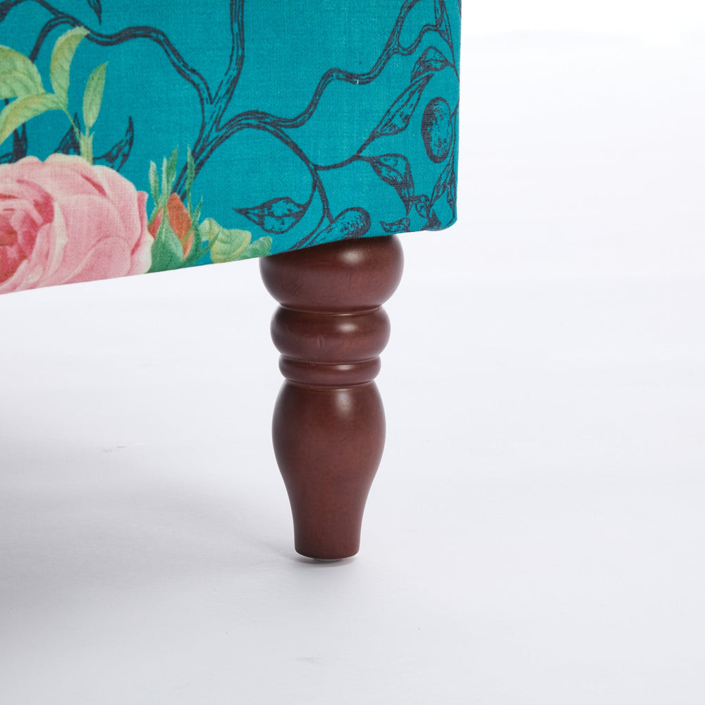 - Bold floral fabric pattern that resists pilling and wear, promoting breathability