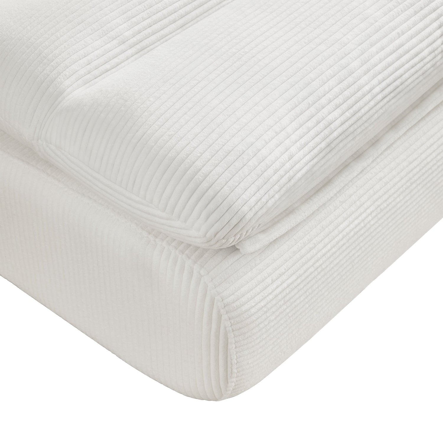 - Upholstered in premium soft and durable white corduroy fabric