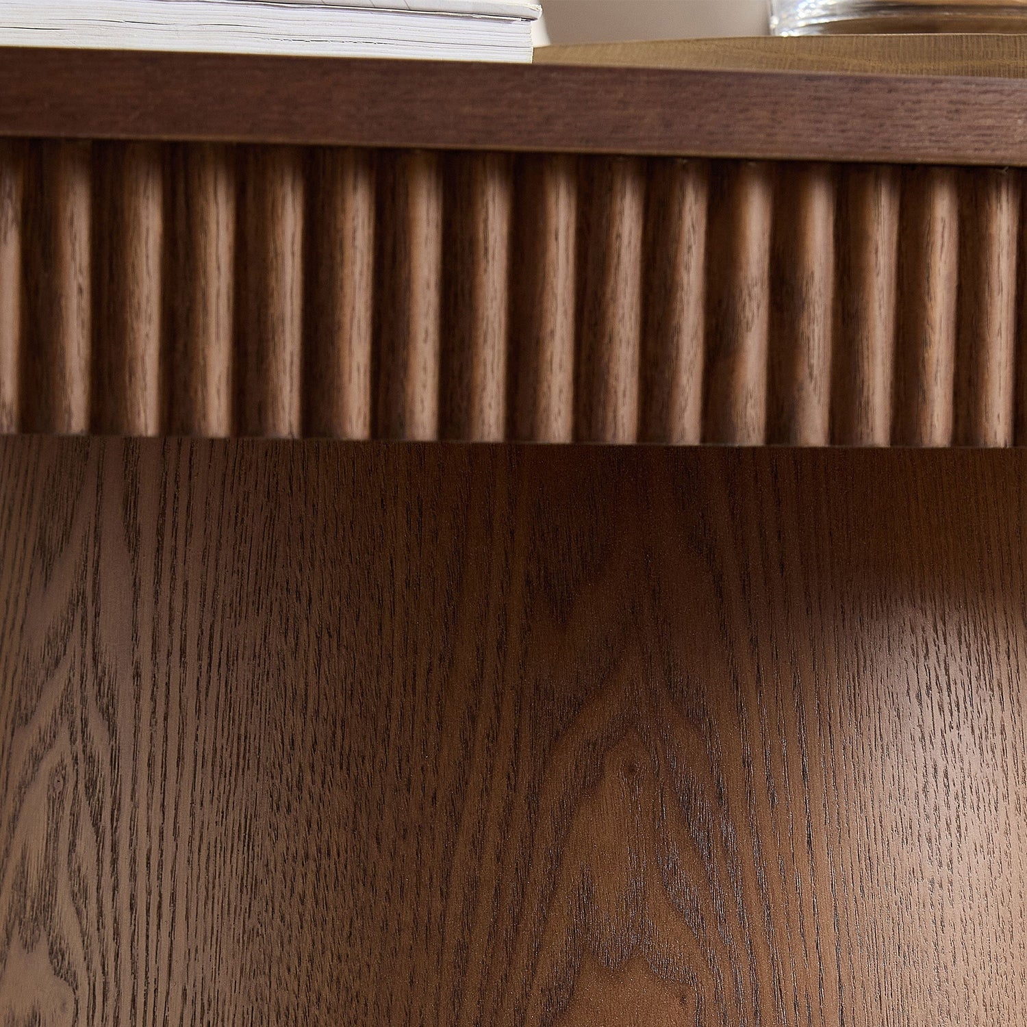 - Wood veneer tabletop showcasing natural wood grain with embossed detailing