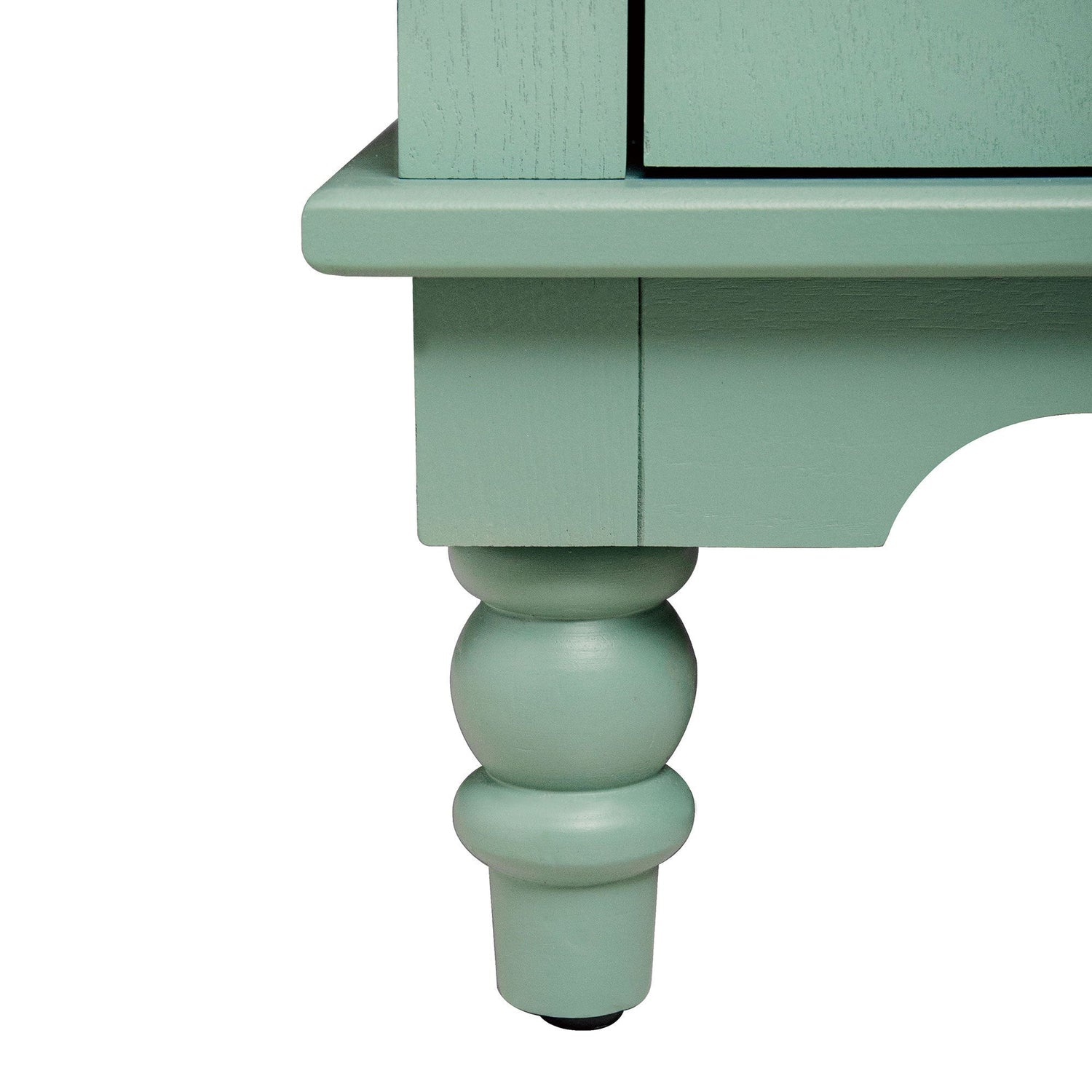This modern accent cabinet features a hollow-carved design and serves as a versatile storage solution for entryways, living rooms, or bedrooms. Its stylish light green finish adds both function and aesthetic appeal to your space.