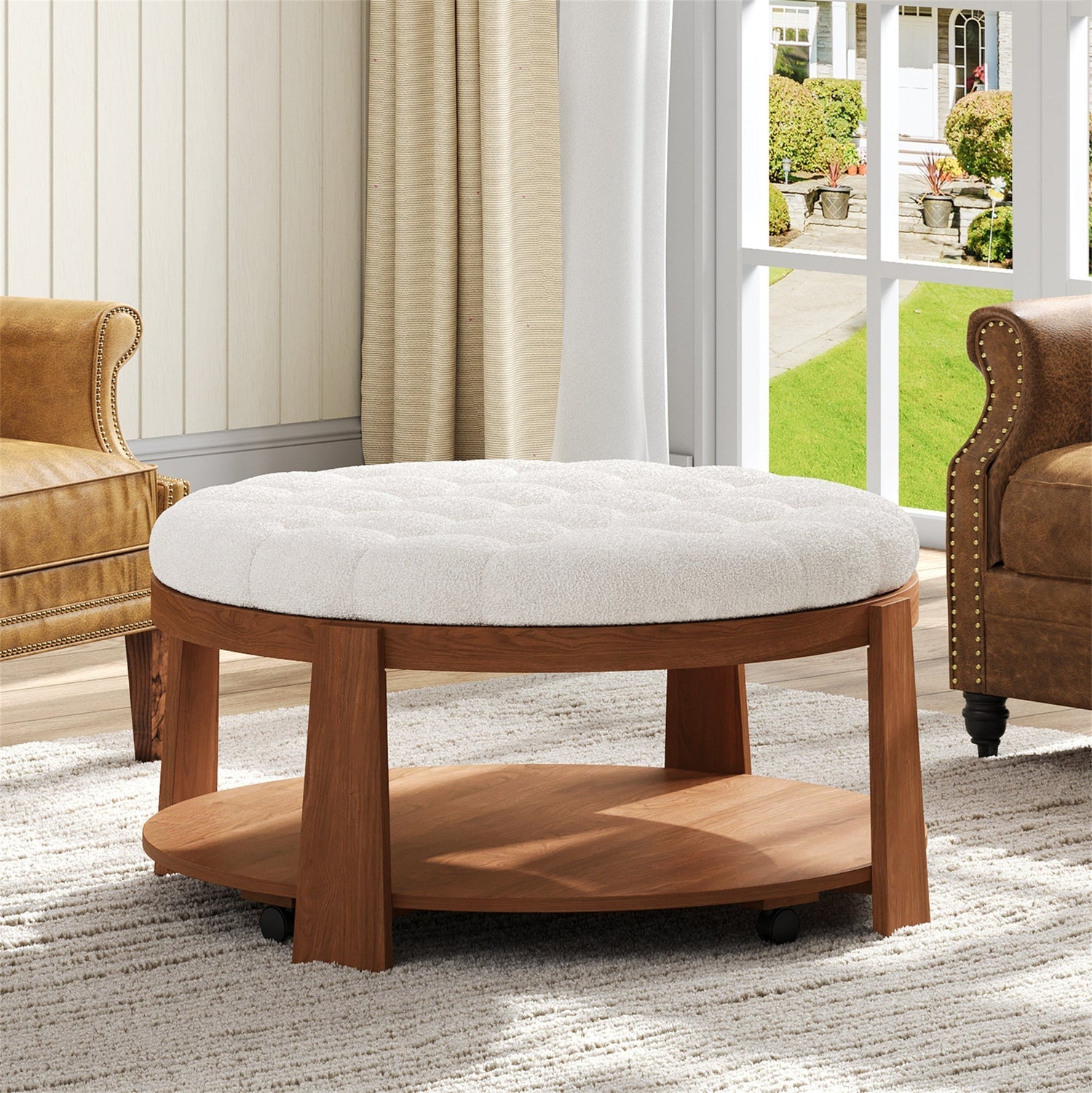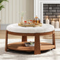 This modern large round ottoman coffee table fits perfectly in living rooms, combining seating, storage, and style in one versatile piece.