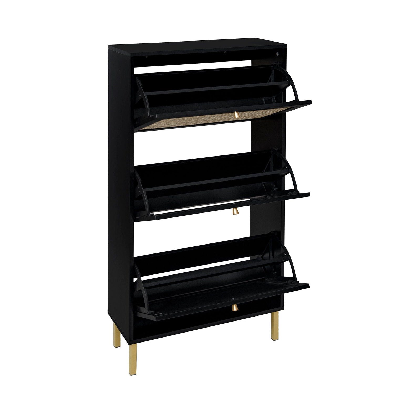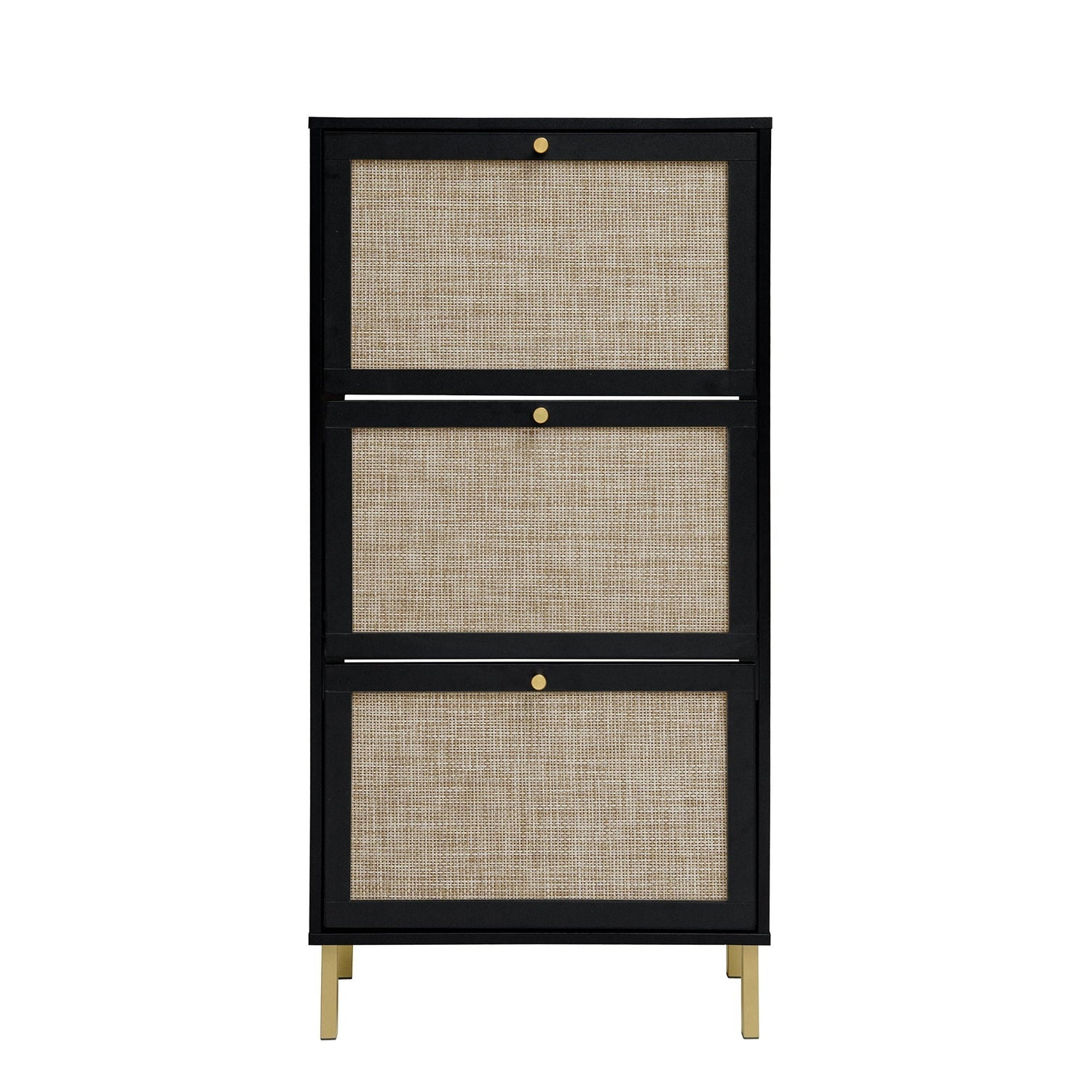 Modern Rattan 3 Door Shoe Rack Cabinet For Entryway
