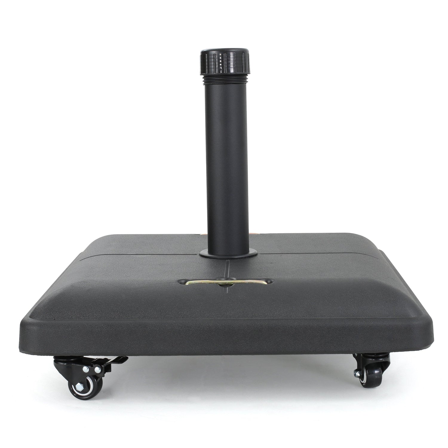 Specifications Place of Origin #originPlace# Main Color Black Main Material Concrete Dangerous Goods #dangerFlag# Dimensions & Weights Assembled Length (in.) 19.60 Assembled Width (in.) 19.60 Assembled Height (in.) 16.30 Weight (lbs) 84.88 Product Features Sit outdoors comfortably in the shade with the help of this outdoor umbrella base. Safely secure your umbrella below your patio table or use it as a stand-alone piece while decoratively using a stable support. Featuring a neutral finish that will blend into your existing outdoor decoryou'll happily lounge in the cool shade flawlessly for hours. Includes: One (1) Umbrella Base Material: Concrete Pole Handle Material: Stainless Steel Color: Black Some Assembly Required Maximum diameter for open Umbrella - 11 feet Dimensions: 19.69 inches deep x 19.69 inches wide x 3.15 inches high Description
