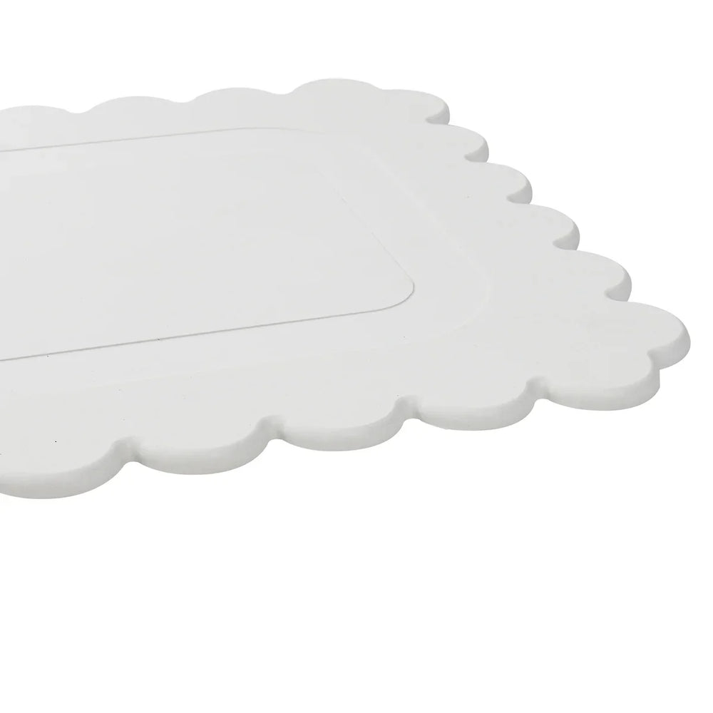 This off white scallop stone bath mat is designed for bathroom floors and shower areas, blending durable function with a clean, minimalist style.