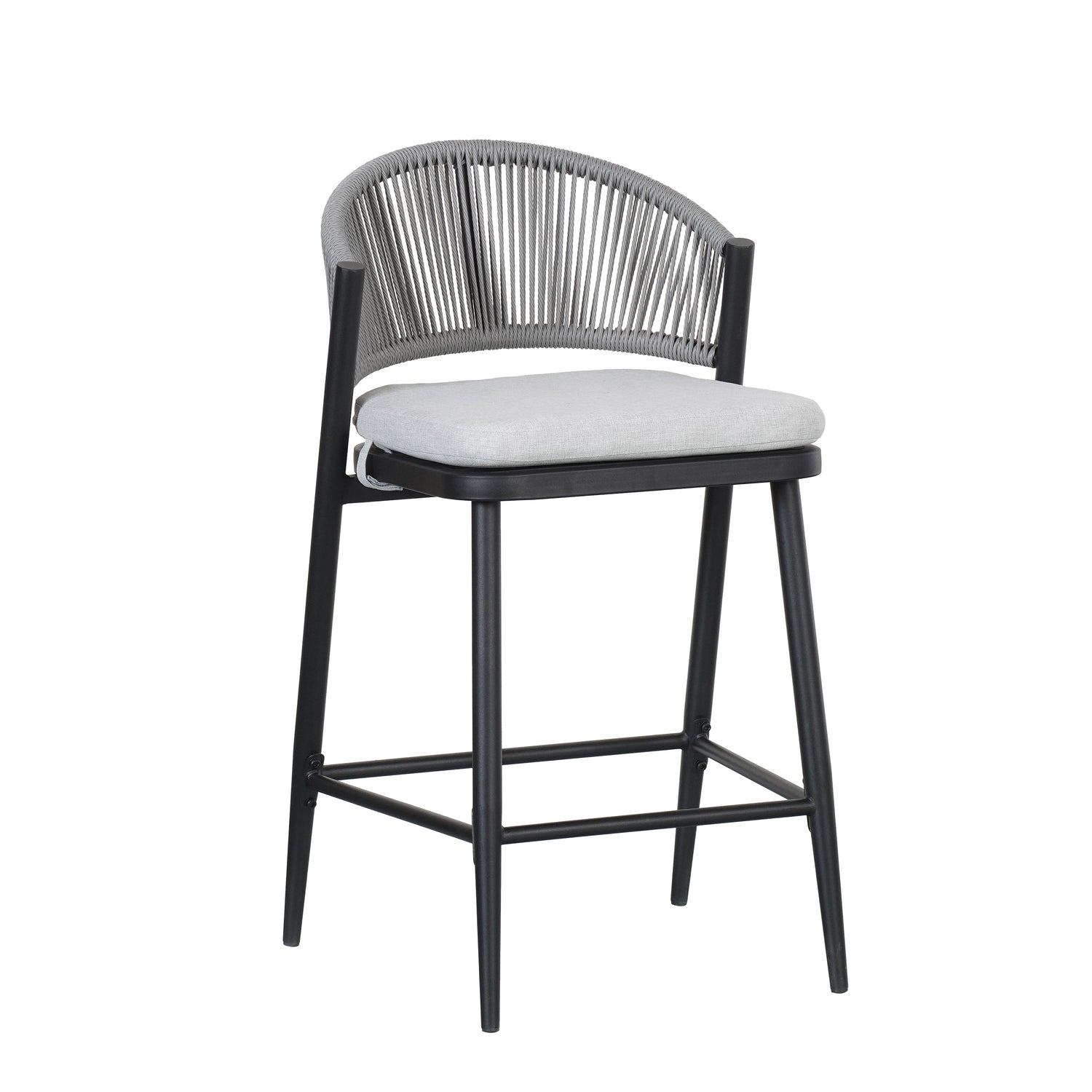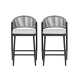 This set of two outdoor counter height stools is designed for patio or garden use, offering comfortable seating complemented by durable materials and a modern style.