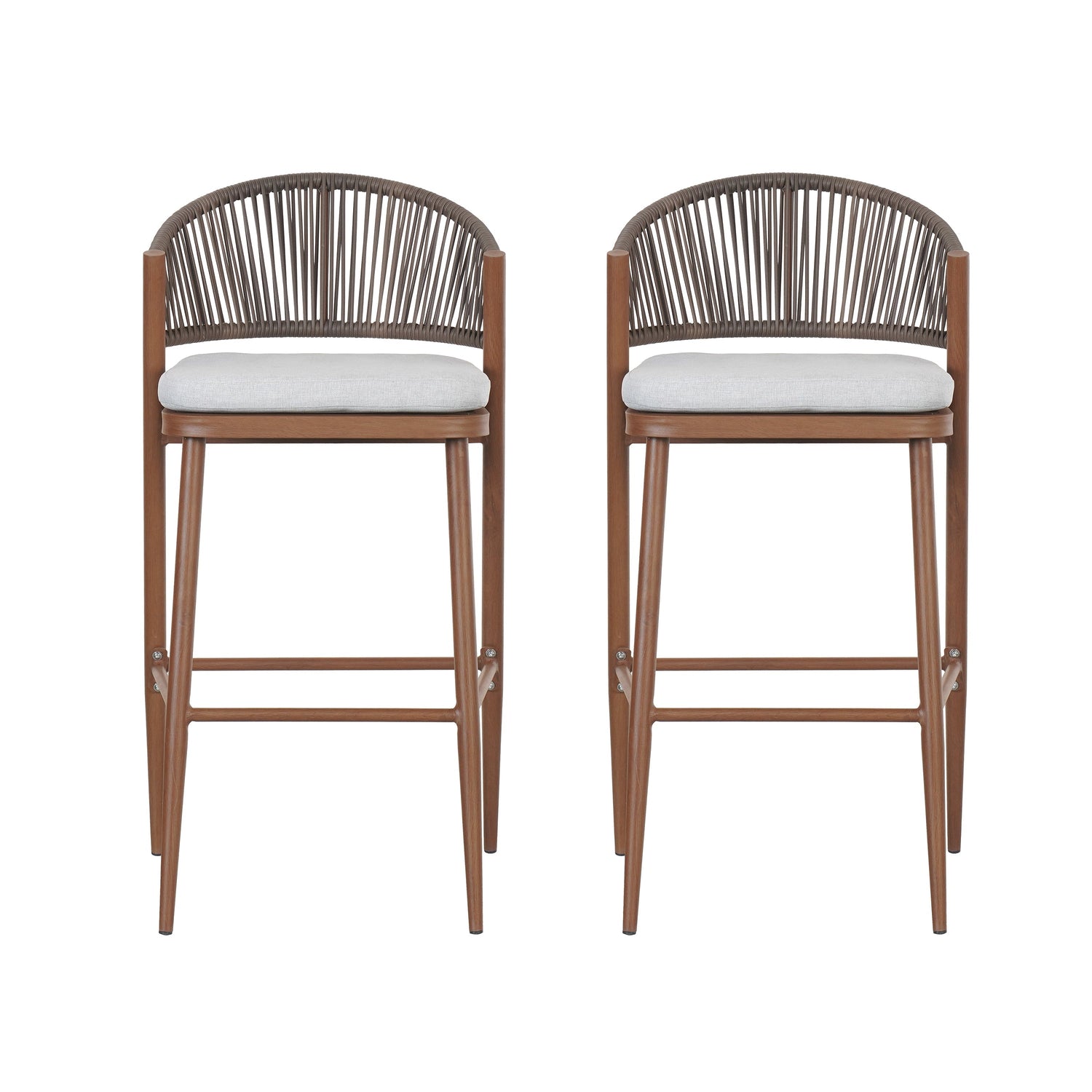 Outdoor 30.25' Bar Height Aluminum Frame Counter Stools with Scallop-shaped Backrest & Water-resistant CushionsSet of 2Teak Finish
