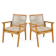 Outdoor Dining Chairs Set of 2 with Teak Finish Wood Frame and Brown Rope