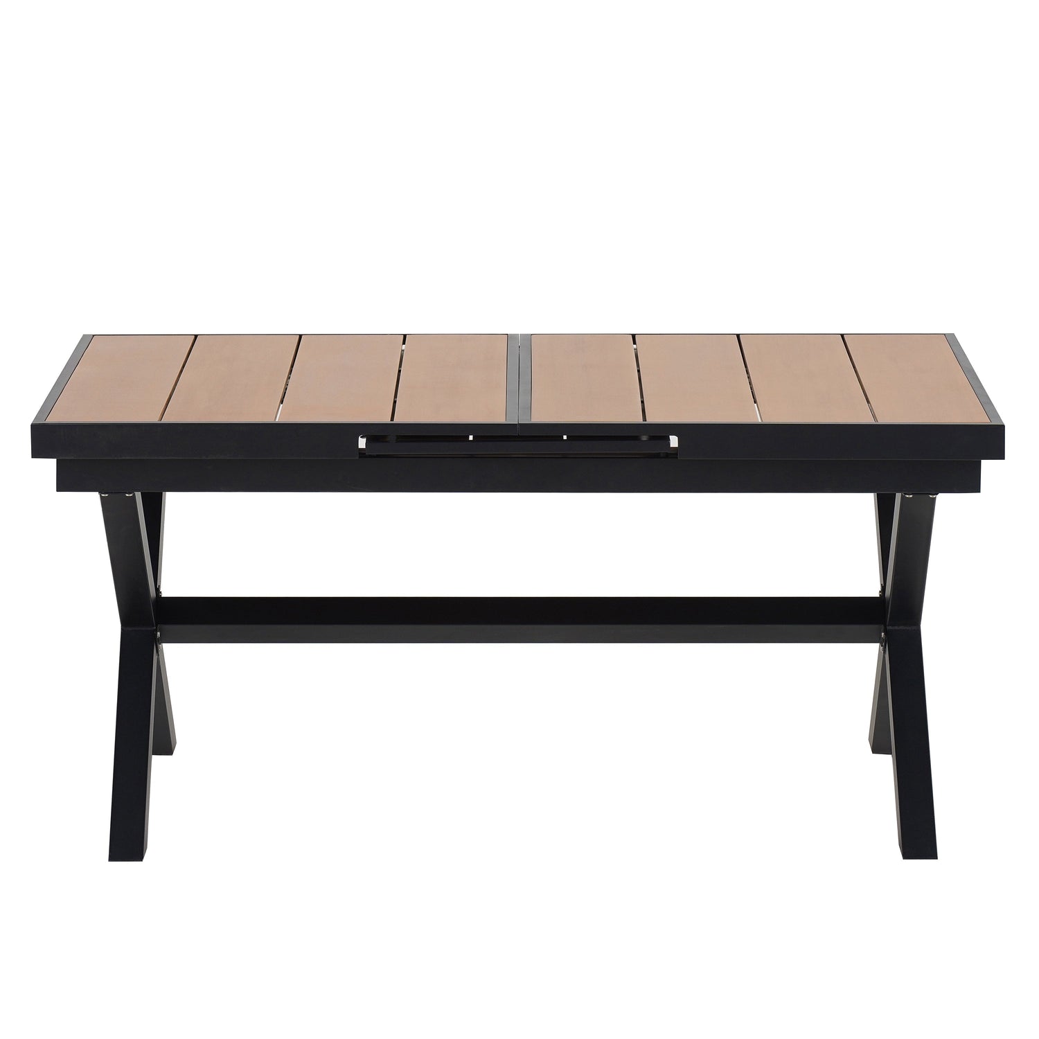 This outdoor dining set includes six chairs and an extendable table, perfect for garden or patio dining areas. It combines style and function to enhance outdoor entertaining with adaptable seating options.