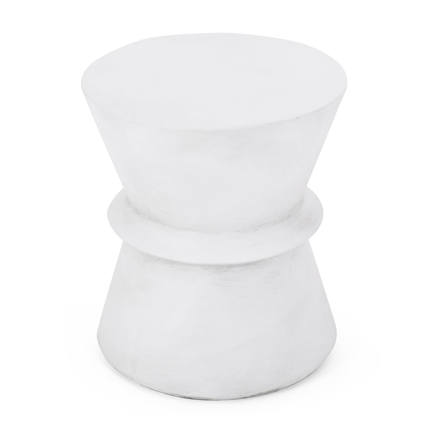 Outdoor Lightweight Concrete End Table with Hourglass Structure, Antique White
